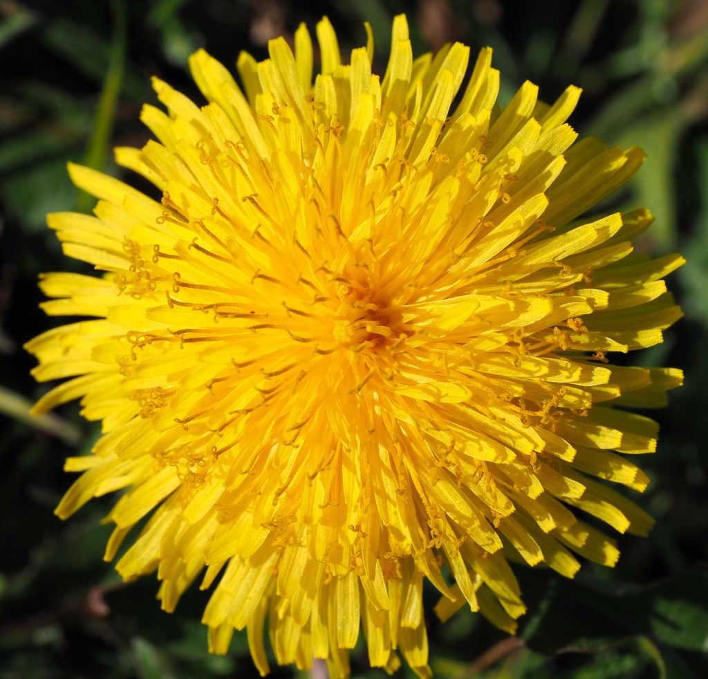 Dandelions pop up each year from roots in the ground, up to ten stems from each little root. The dandelion head is composed of a composite of tiny little florets, over 100 florets per flower head. These florets are bisexual – the dandelion is a hermaphroditic plant – but although they produce pollen, funnily enough it is not necessary for reproduction of the plant. Dandelions are able to produce seeds without having to be fertilised – by a process called apoxixis (1).
