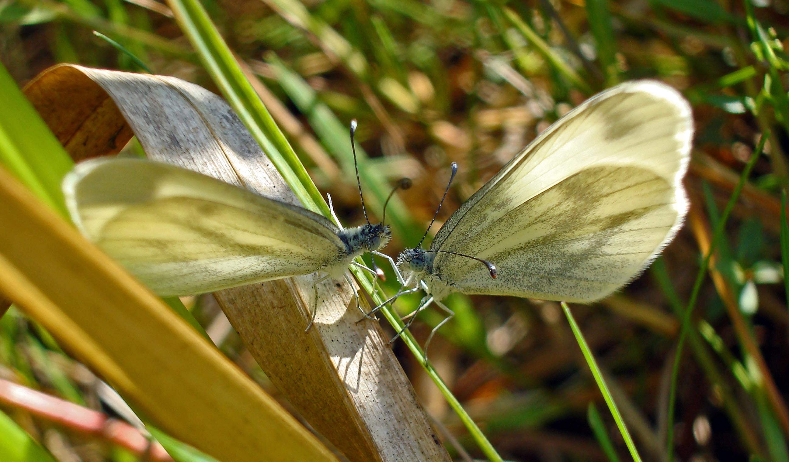 This little butterfly is a member of the family Pieridae, and has a wide distribution which covers Southeast Asia and the Indian subcontinent. I took this photograph in northern Thailand. It was reportedly given the lyrical name of ‘wandering snowflake’ by a Victorian entomologist called Charles Lionel Augustus de Nicéville, who wrote a three-volume treatise on The butterflies of India, Burmah (sic.) and Ceylon. These books can still be read online (1). It’s common name is Psyche, or a little spirit. It reminds me of another little white pierid butterfly, The Wood white (Leptidea sinapis), which also has a wide distribution, across Europe, the Middle East and Central Asia. I took this photograph of two Wood whites – perhaps a male and female as they appear to be exchanging something via their proboscis – in Spain. Another pair of summer snowflakes!