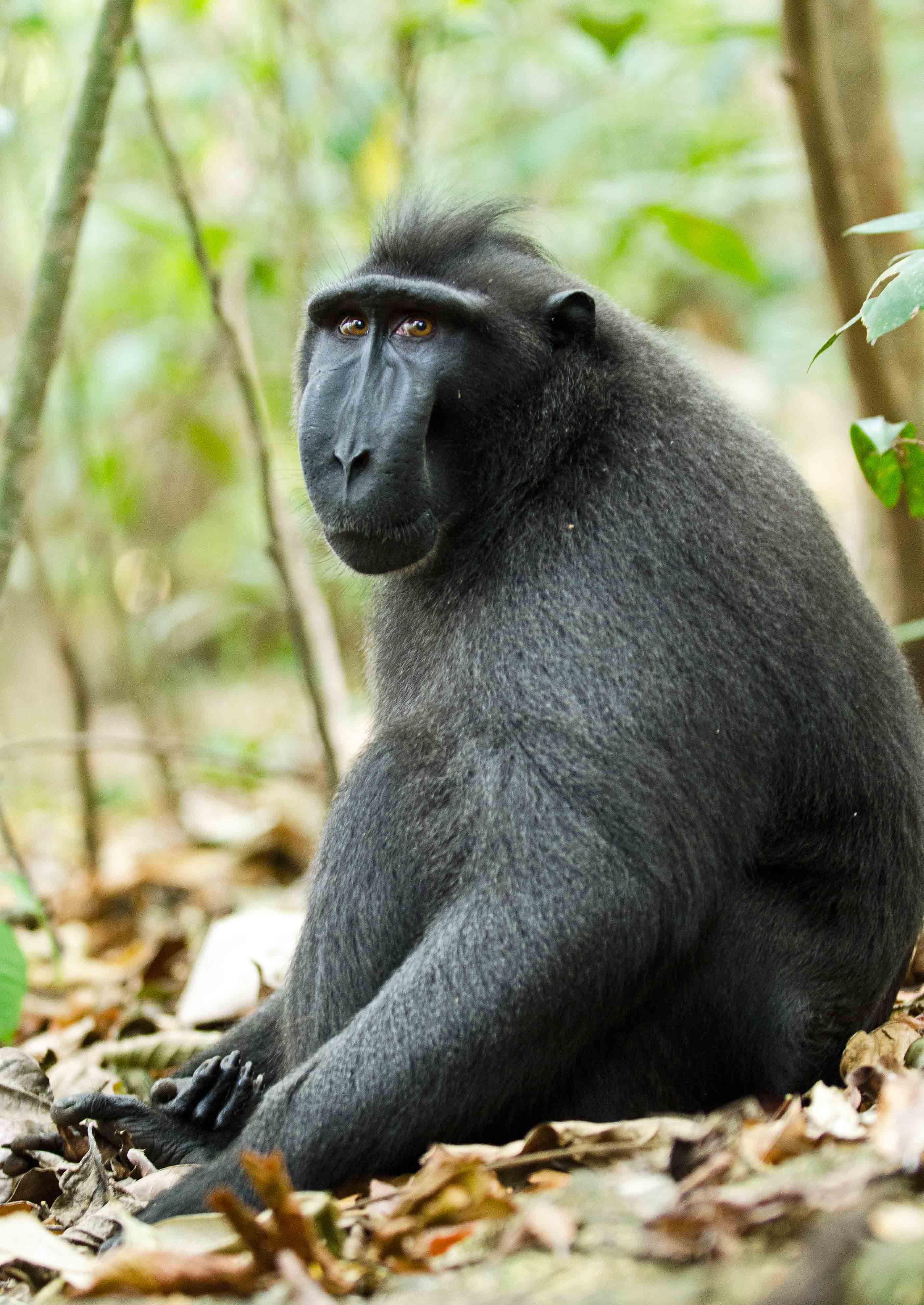 Black Crested Macaques or Sulawesi Black Macaques (Macaca nigra) are only found in northeastern Sulawesi (and on a couple of adjacent islands) in Indonesia, and are critically endangered as a result of both habitat loss and hunting for bush meat. Unfortunatley for them, they are considered a delicay in this part of Sulawesi (Minahasa) so have to be heavily protected; there is however, a large introduced population on the island of Pulau Bacan in the Moluccas which according to the IUCN probably numbers at least 100,000 individuals (1), although they may have hybridised with other macaques I understand.