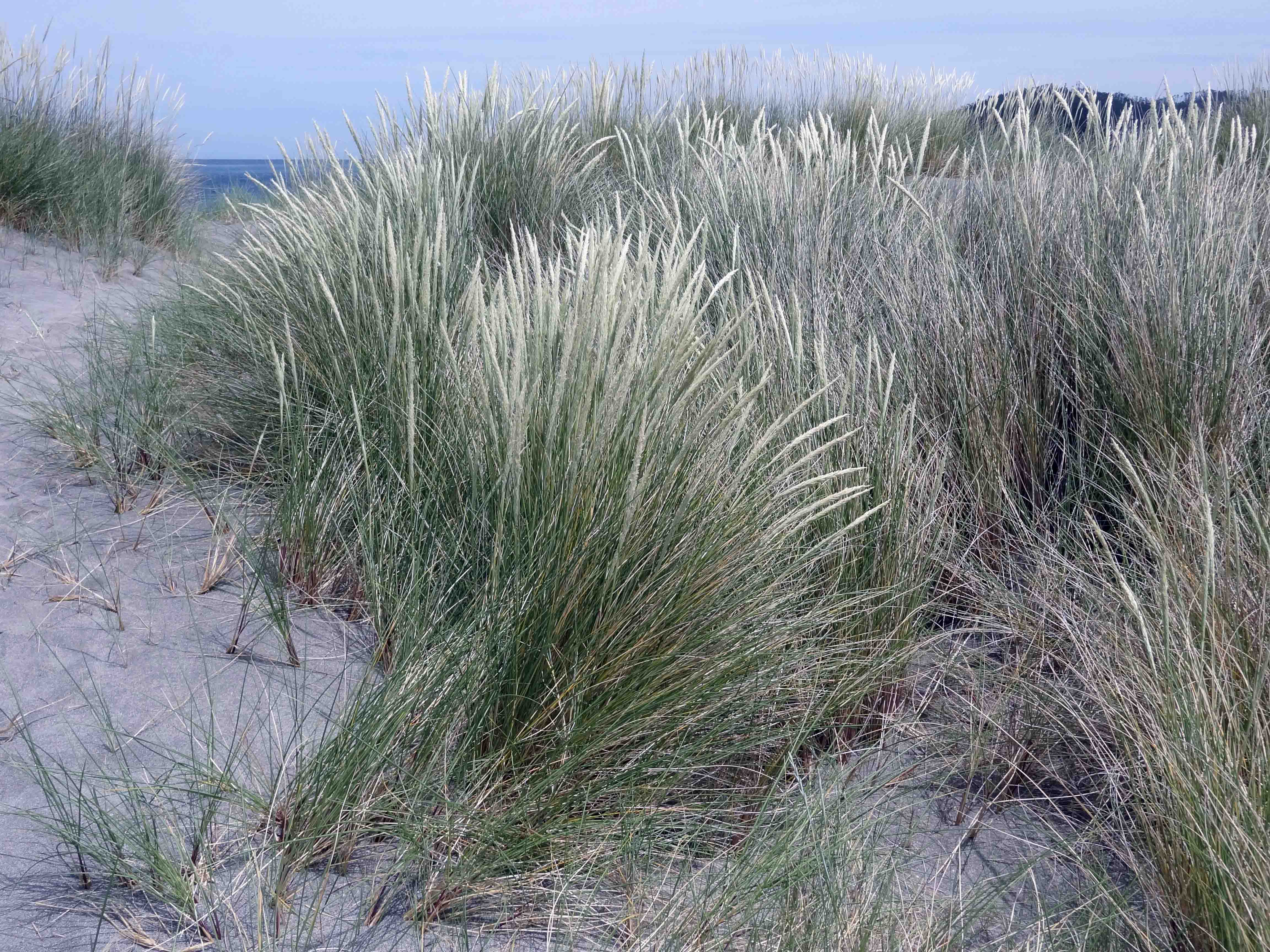 Vegetation associated to the dune system includes European Beachgrass (Ammophila arenaria), which helps to bind and stabilise the sand, and a variety of different plants, including: Sea Holly (Eryngium maritimum), Sea bindweed (Calystegia soldanella), Sea Spurge (Euphorbia paralias) and Sea Stock (Malcolmia littorea).