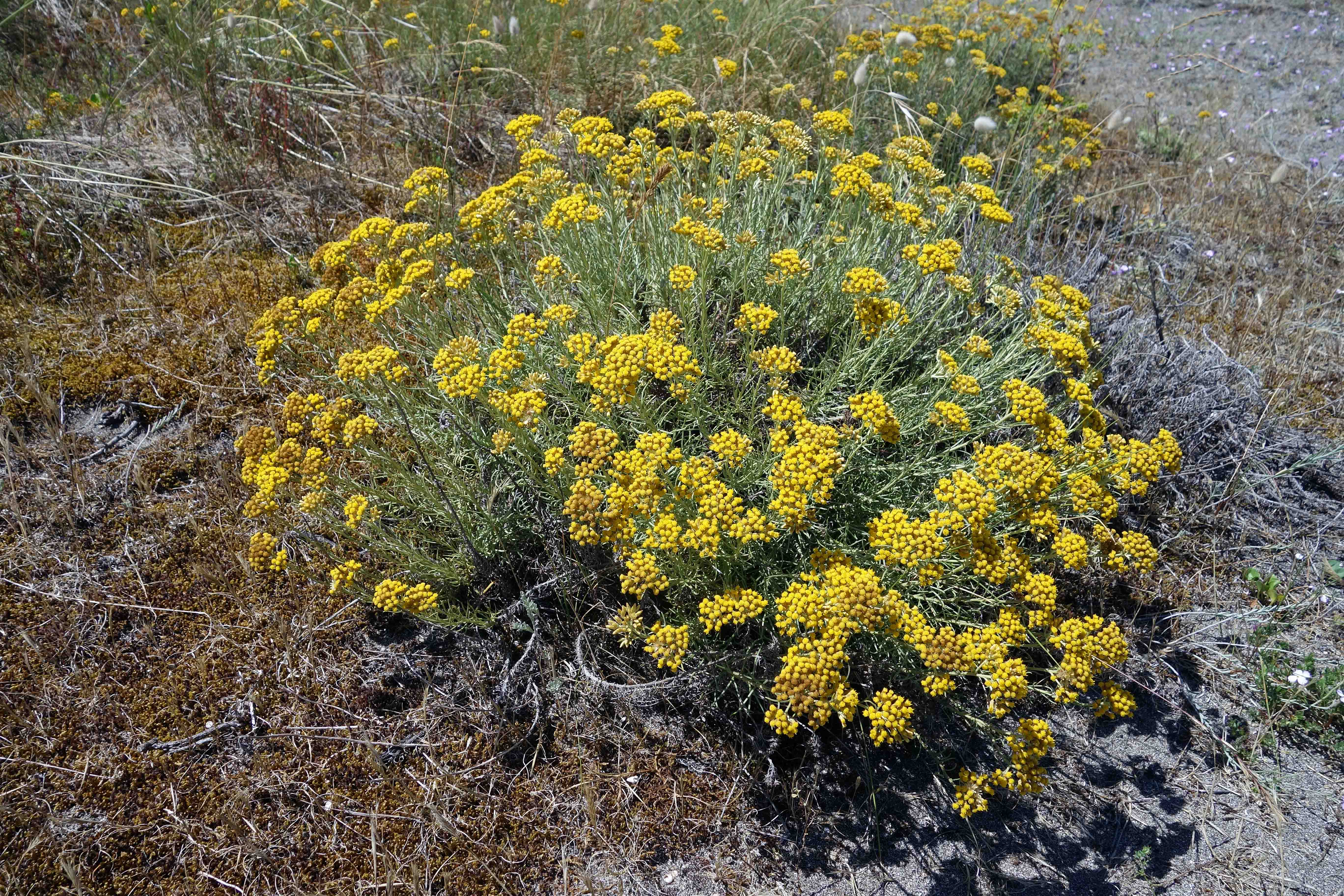 There are also clumps of various flowers in the dunes, such as the so-called Curry plant (silly name) (Helichrysum italicum spp serotinum) and Sea Mayweed (Tripleurospermum maritimum) to name just two.