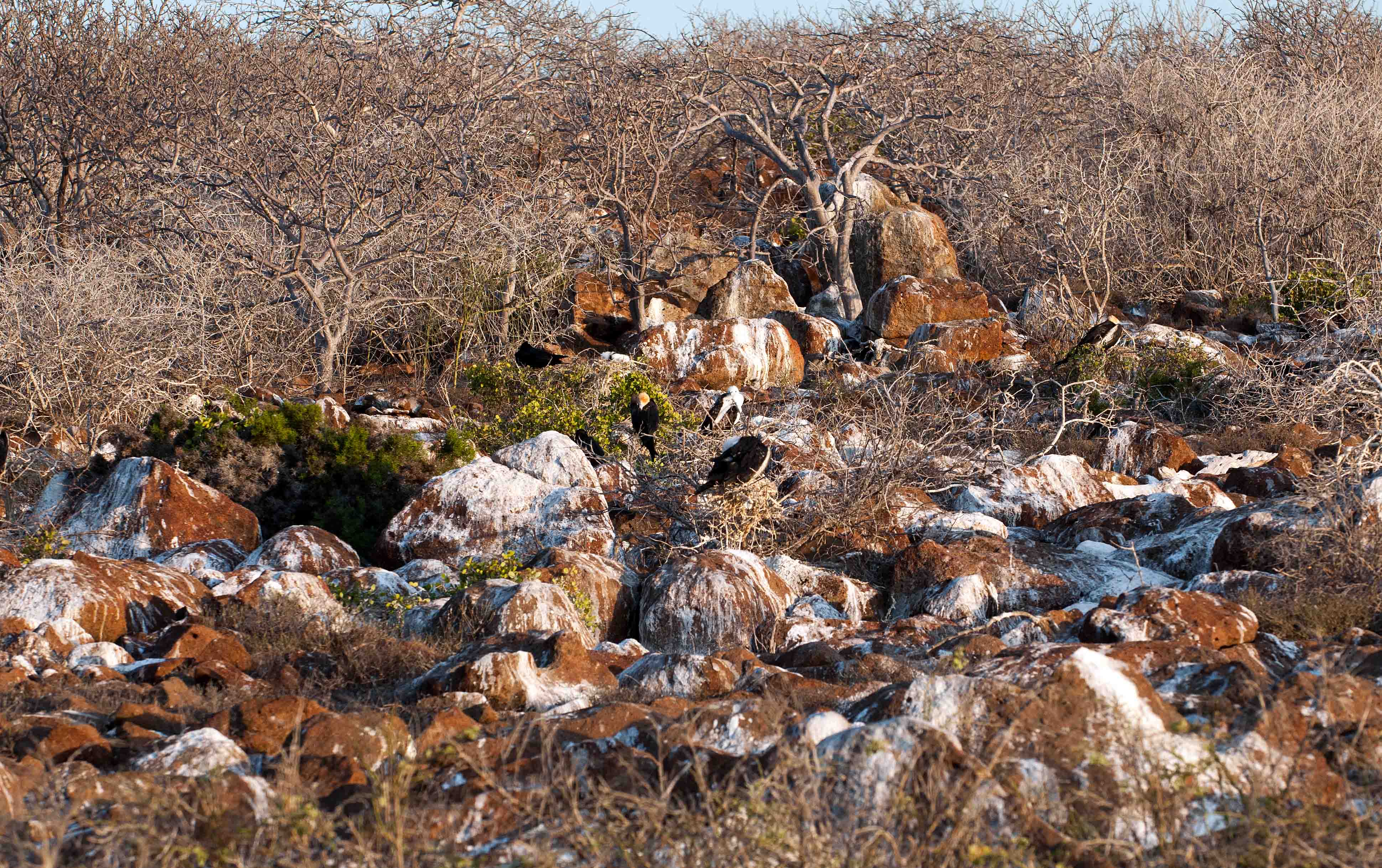 The trail on North Seymour passes through the frigatebird colonies where the birds nest on low saltbush trees.