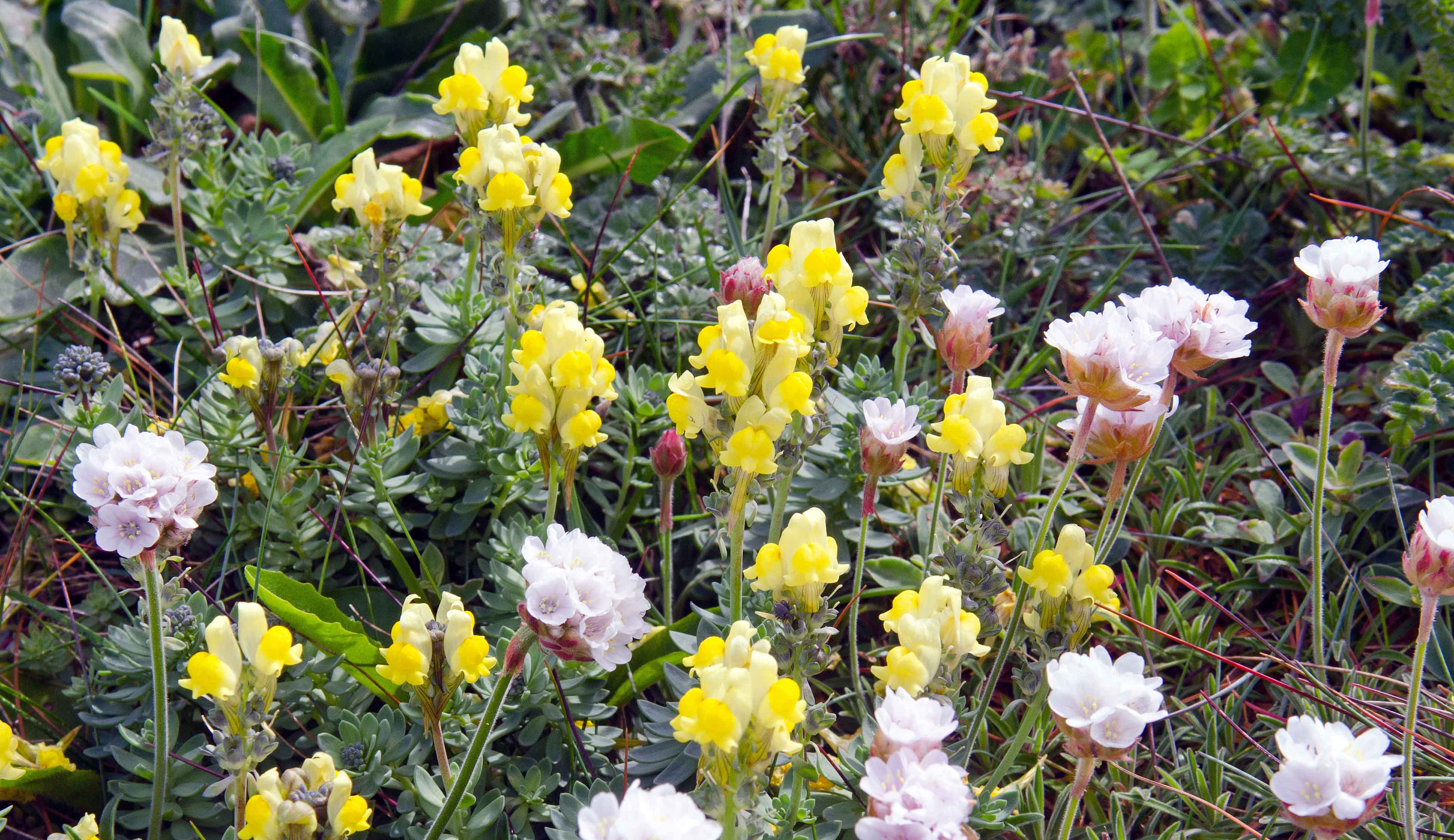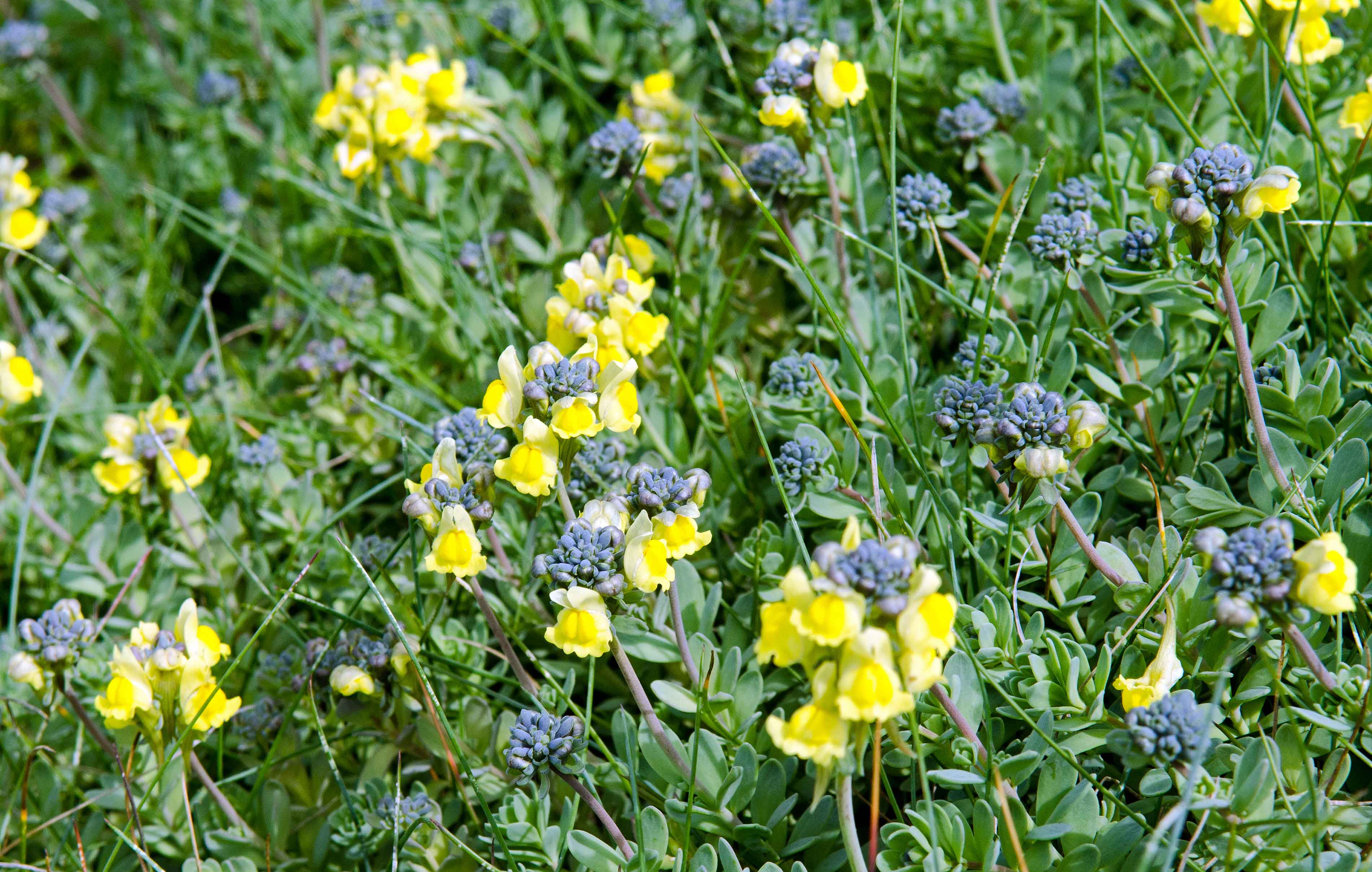 Prostrate Toadflax (Linaria supina subsp. martima) and sea pinks
