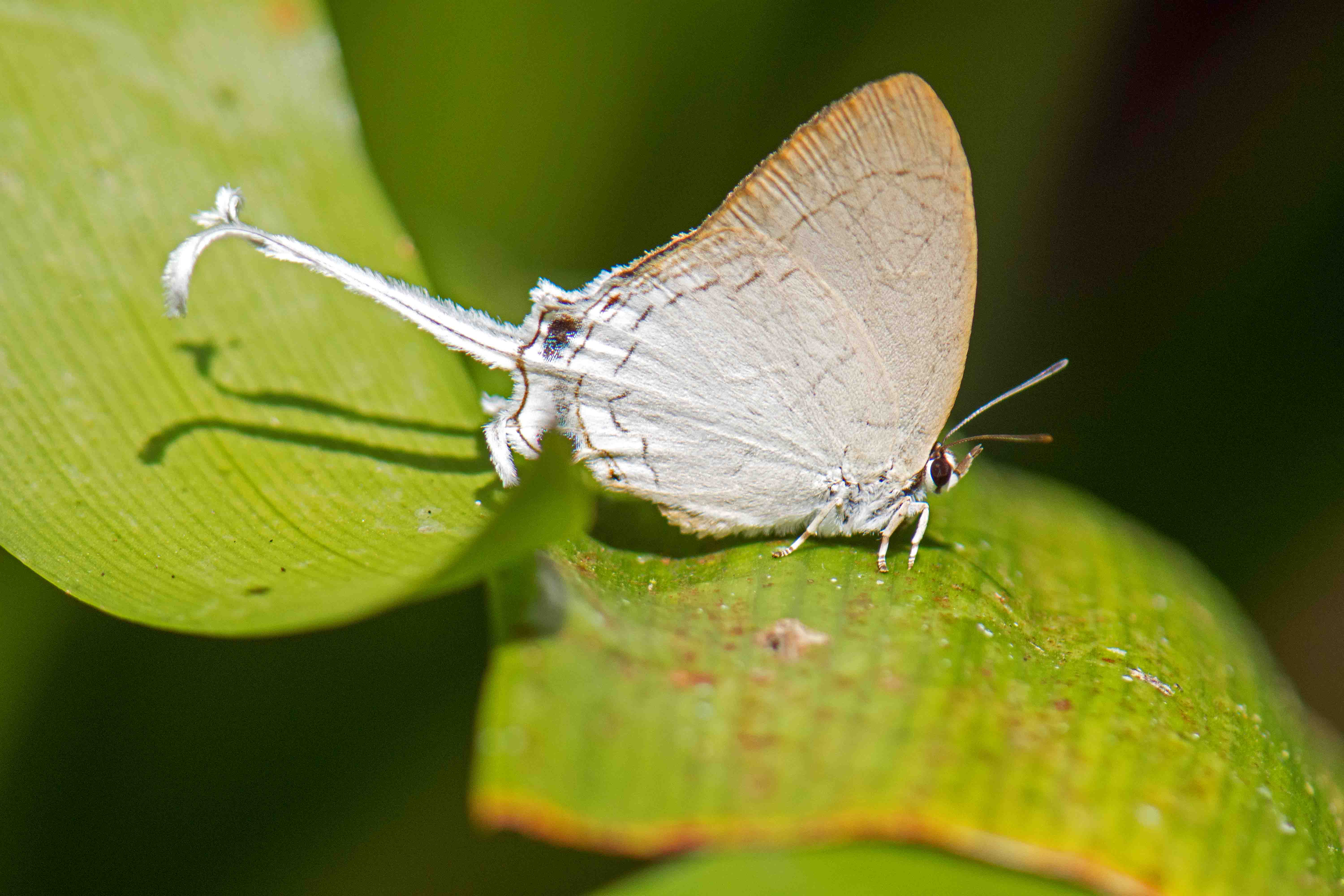 Another feature which has become obvious to me as I have taken more and more photographs of butterflies, is that they are seemingly able to fly about and carry out their lives, despite sustaining considerable damage to their wings. Some of this may be simple ‘wear and tear’ as well as predation damage. I have written about this before (4)! It’s a subject which fascinates me for some reason! Perhaps its something to do with our universal fragility? Compare these two images, below. The first, a highly worn and presumably ‘old’ butterfly – a male Clipper, Parthenos sylvia apicalis. The second, a much fresher specimen of the same species – but nevertheless, still sporting a beak mark on the left hind wing – which only became apparent to me after I photographed it and looked at the image on my computer. Yet both individual butterflies were gaily flying around and resting to feed on flowers. Indistinguishable to the casual observer. For some reason, perhaps to do with age, I take comfort in this fact!