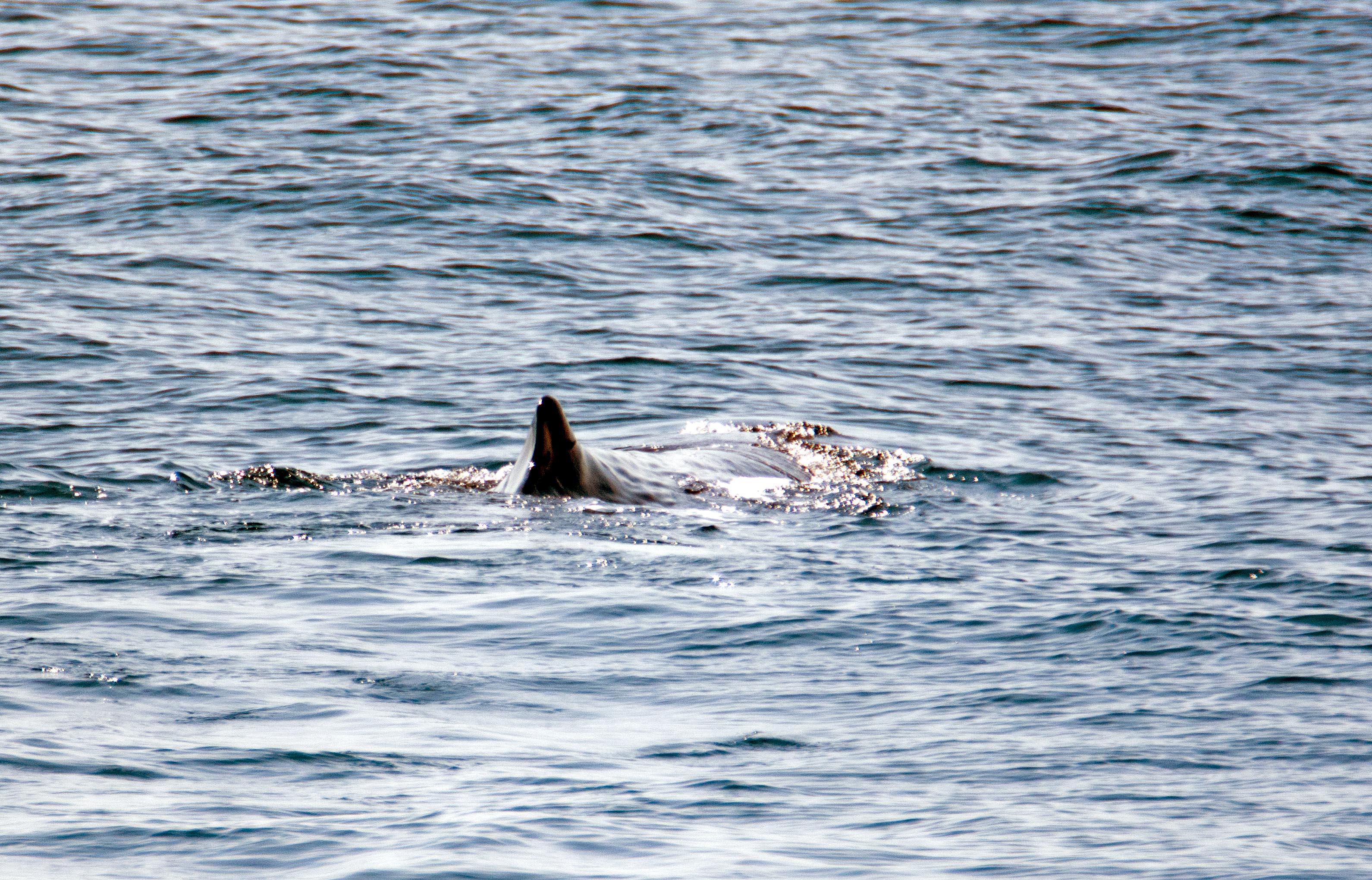 This whale was a little bit more co-operative and we managed to get slightly nearer than the first one, but it too soon decided that enough was enough, and it dived down. Being behind it this time, we got a better view of the great tail fluke as it turned and dove in its majestic swoop.