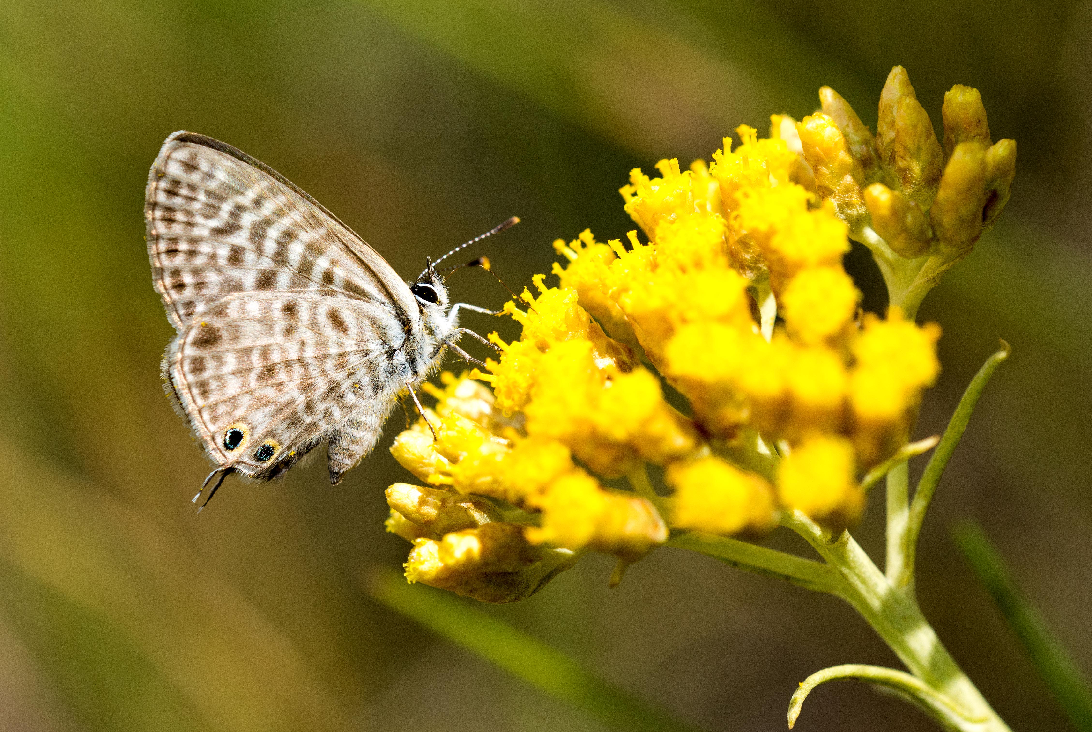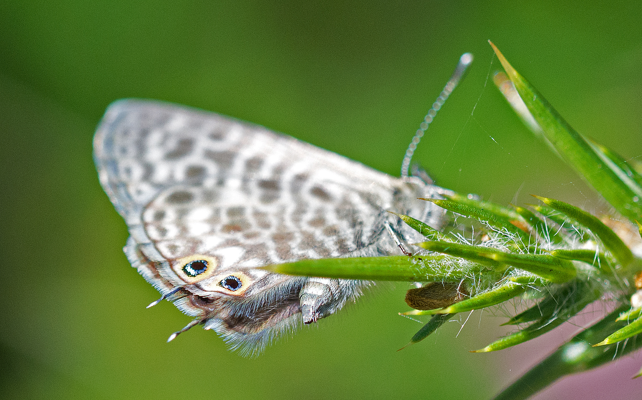Lang’s short-tailed blue (Leptotes pirithous) showing eye-spots and false tails. Note the iridescent scales around the individual eye-spots.