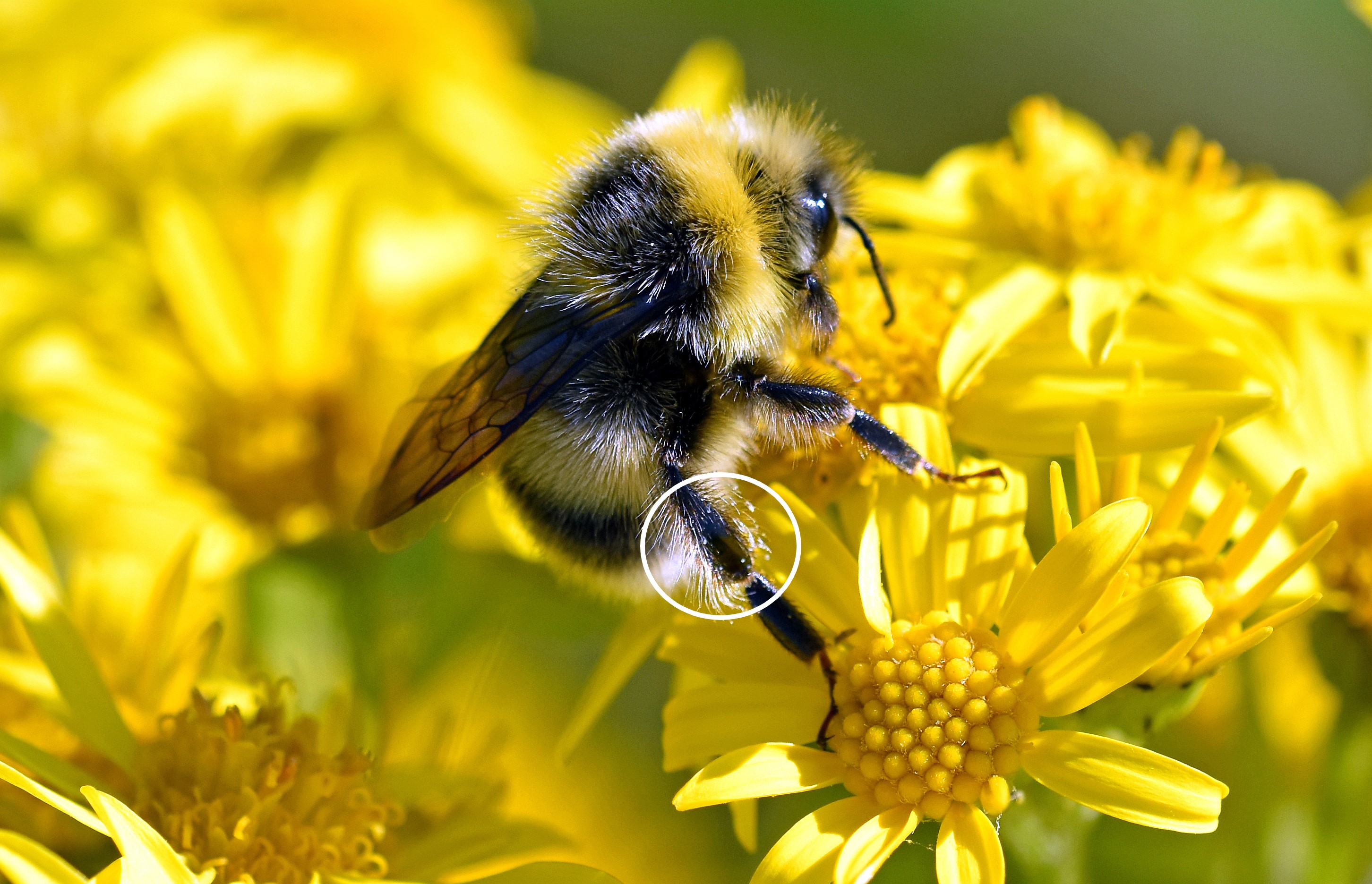 I will finish with a picture of a very well-groomed bee! I photographed this White-tailed Bumble Bee (Bombus lucorum) worker (below) in Yorkshire on 18th July this year (2017); it appears to have an empty pollen basket (the shiny hairless patch on the tibia of the hind leg). Perhaps it was newly emerged and had only just started foraging?