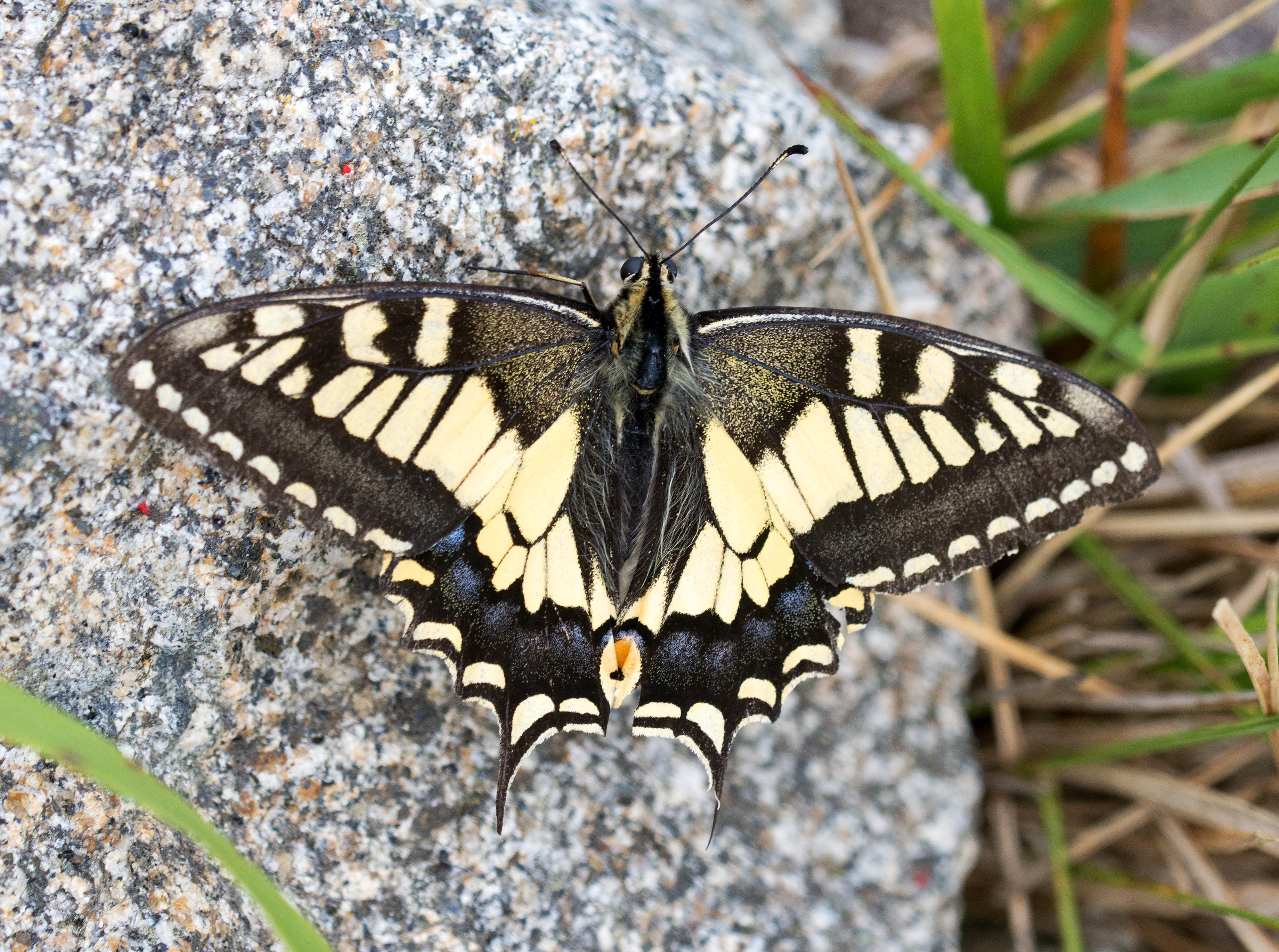 Male swallowtails are well-known for visiting hill-tops – a phenomenon called hill-topping – where they establish territories as location sites for meeting females. I guess it is then a matter of waiting for virgin females to make their way up the mountain looking for mates! The males perch on prominent sites, such as rocks or stems of grass (below). They emit strong scents, which it is said can be smelt by humans (5), so the females might be able to find them this way, although it is unlikely that this occurs over long distances.