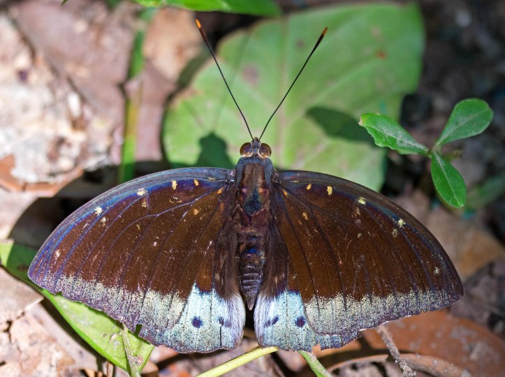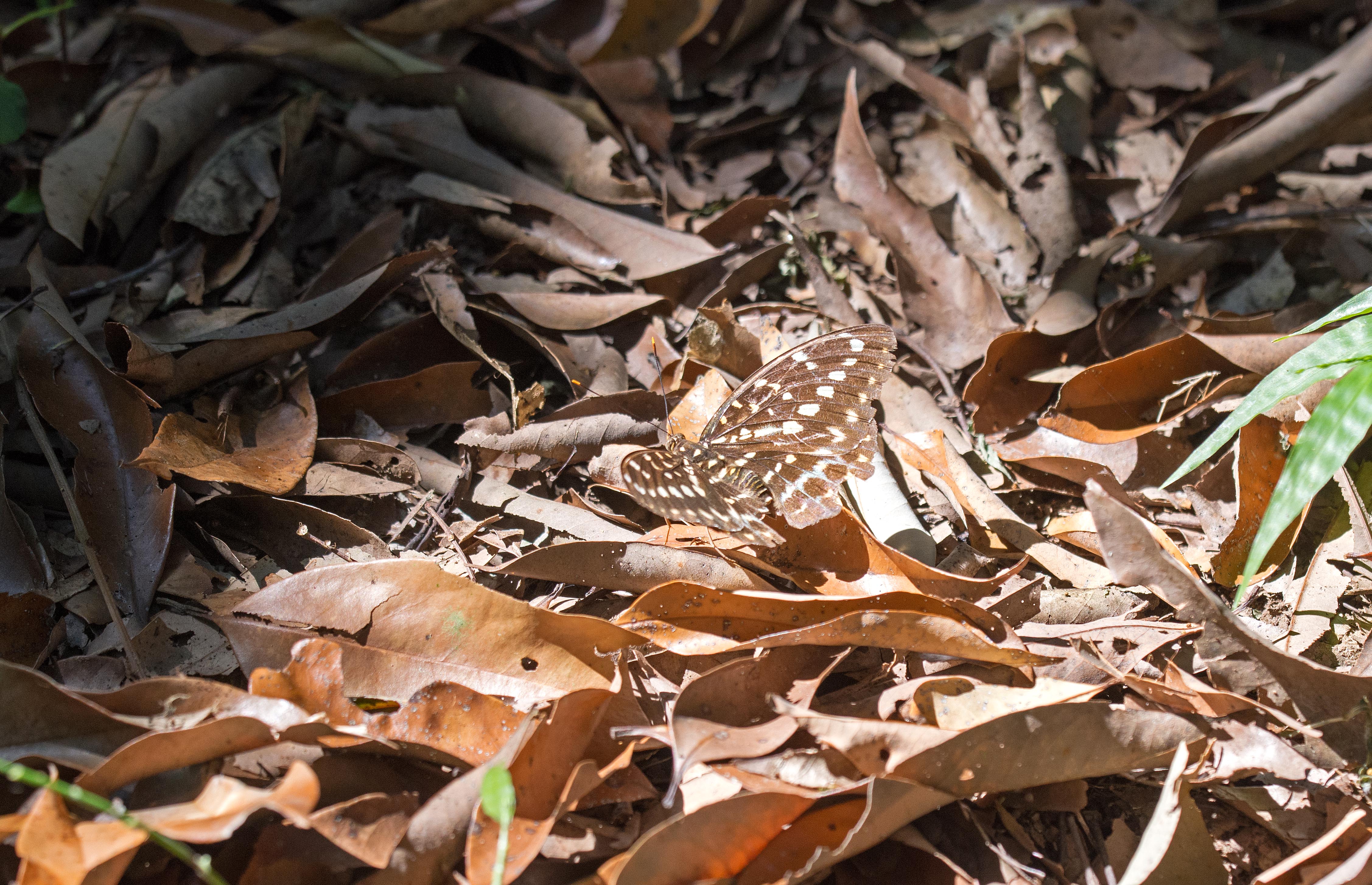 Not an especially unusual place, but a quiet haven of dappled woodland, with a nice selection of butterflies flitting about under the trees. During the day, there were lots of nice sunspots; the sort of place one might see a Speckled wood butterfly in Europe. But this was a tropical situation and the residents of these little sunspots were very different. At least in form, but perhaps not so different in behaviour?