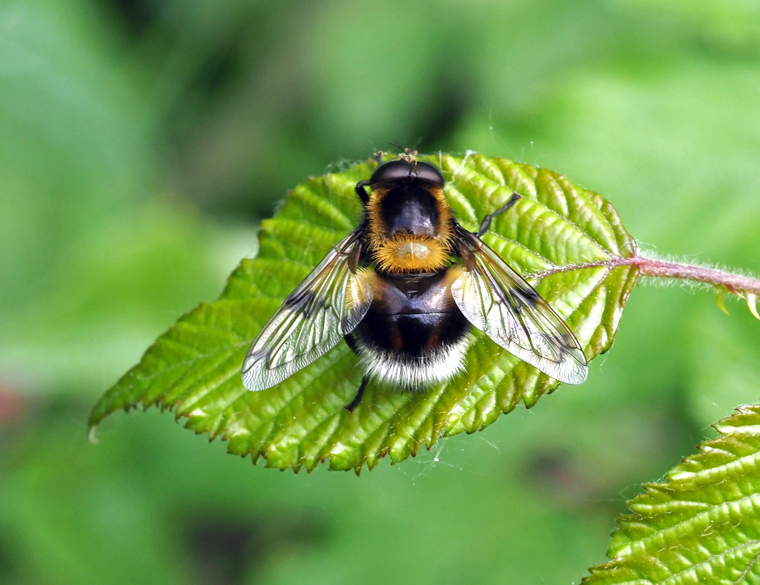 I’ll leave you, dear reader to decide whether this form (V. bombylans var. plumata) looks like White-tailed Bumble Bee (Bombus lucorum) (shown below).