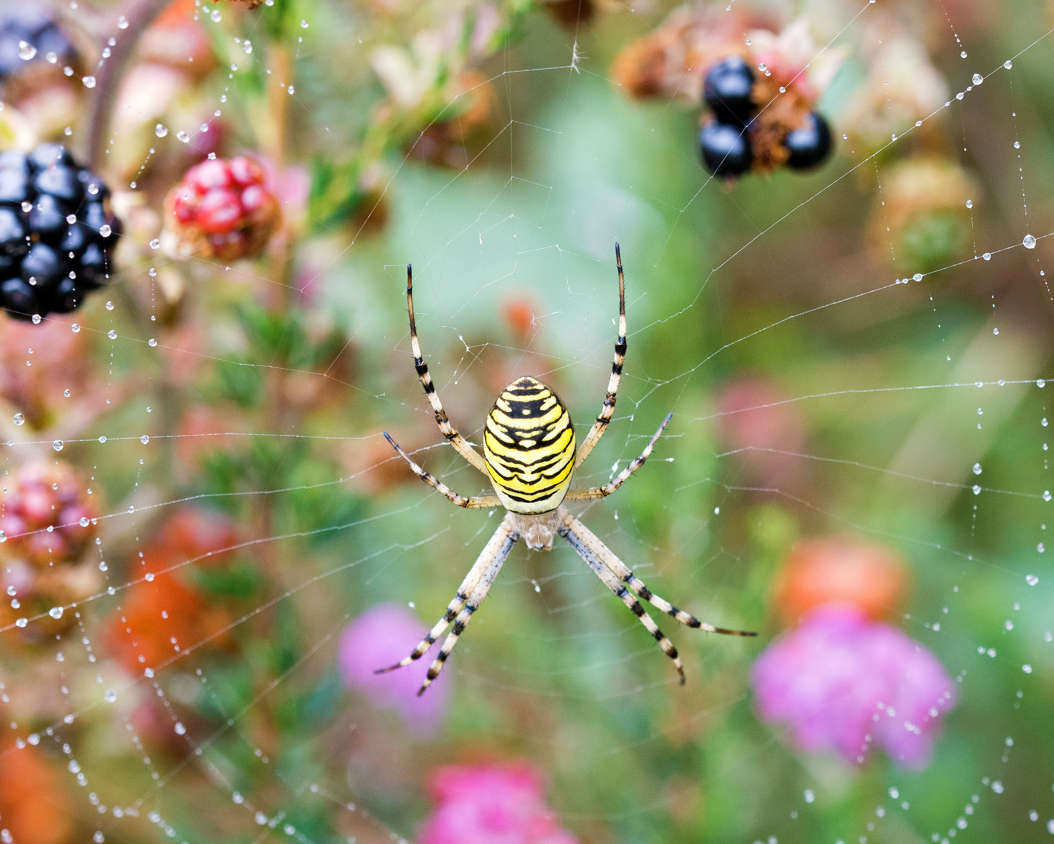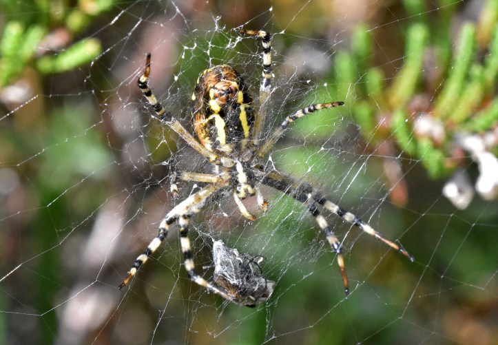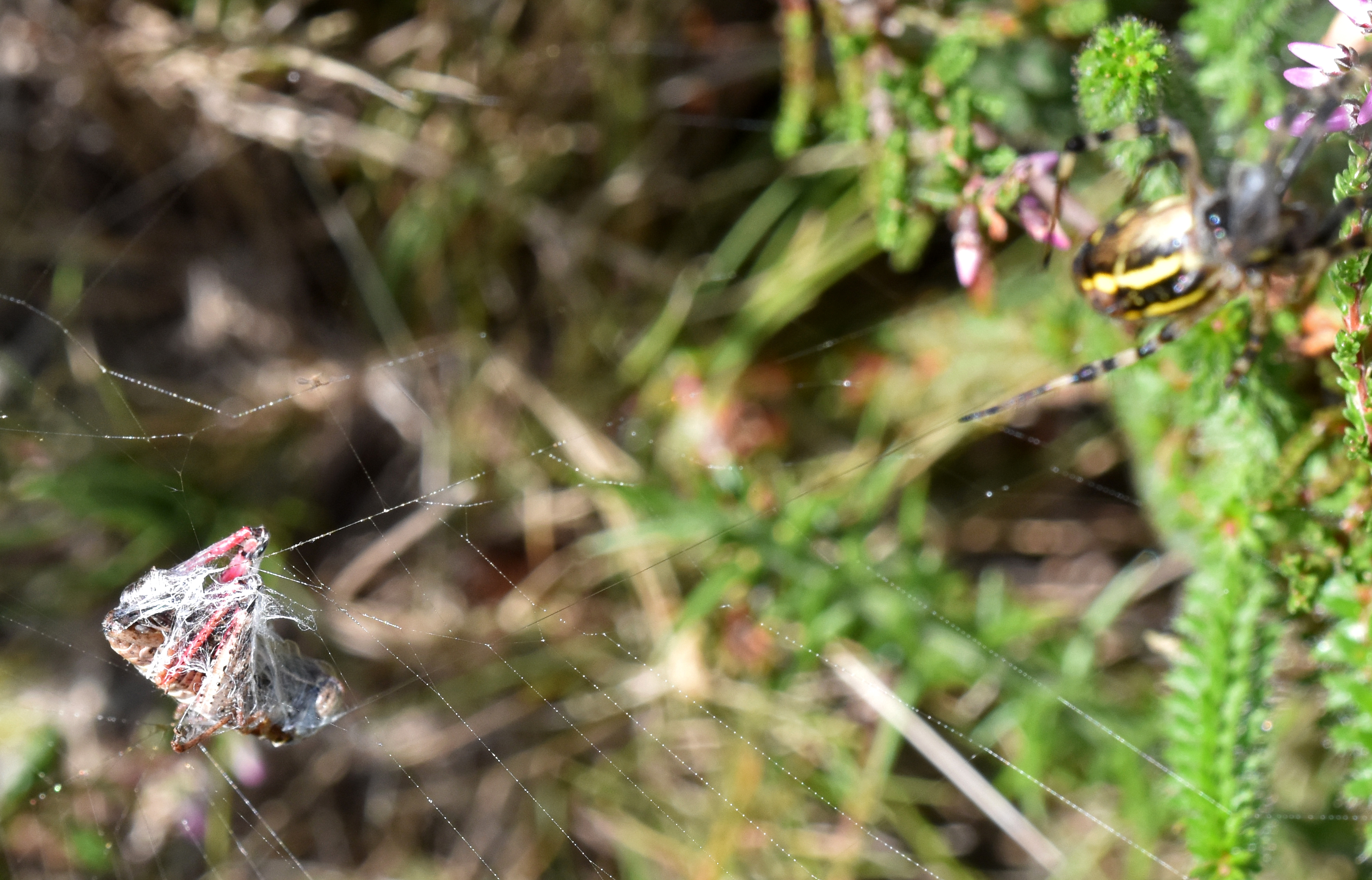And the spider was a fairly small Wasp spider, Argiope bruennichi (below).