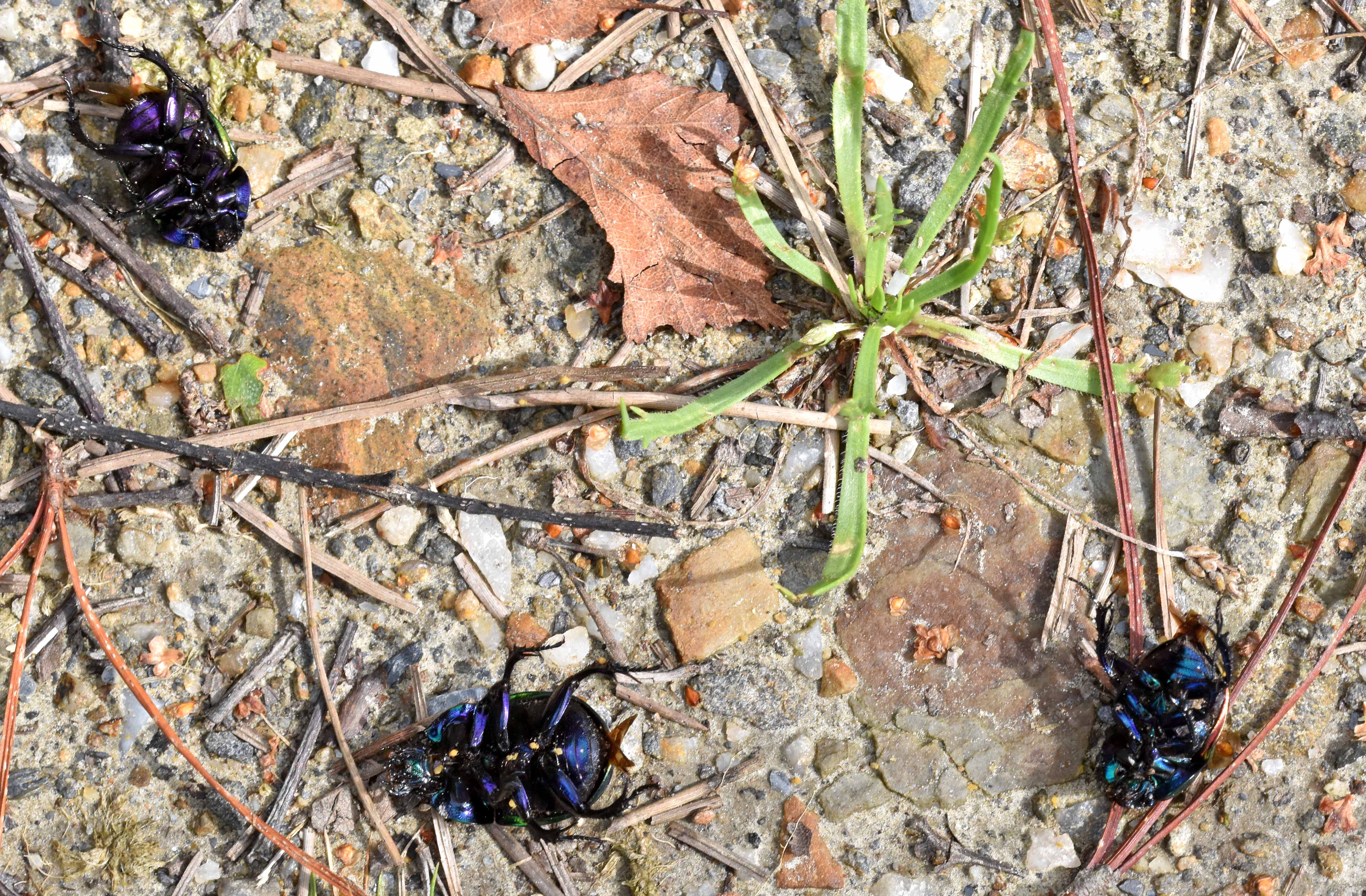 On a final note, these beetles are I believe, at risk of poisoning from ivermectins, veterinary pharmaceuticals given to cows to treat roundworms and other stomach parasites. I was very alarmed to come across a whole group of dead or dying beetles, all lying on the ground not far from each other (below). There was no dung in the vicinity; it was as though they all succumbed at the same time. The fact that not all of them were dead, and some were moribund and still twitching, made me suspect poisoning. Very worrying and something I plan to investigate further.