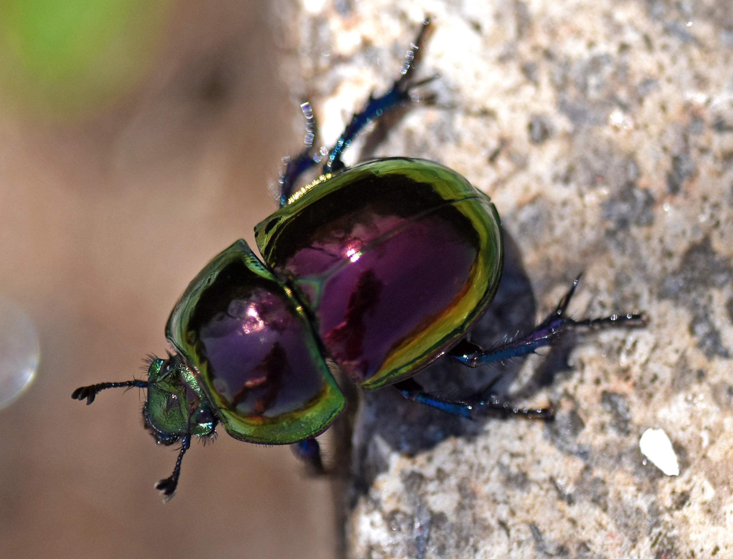 On their travels in search of new dung, these beetles seem to land and take off quite a few times. They are relatively tolerant of being photographed (!), but after a few moments, seem to tire of the attentions of a large hominid, and spread their wings and take flight! I managed to catch some of the different stages of the elytra-opening and wing-unfolding process in different individuals.