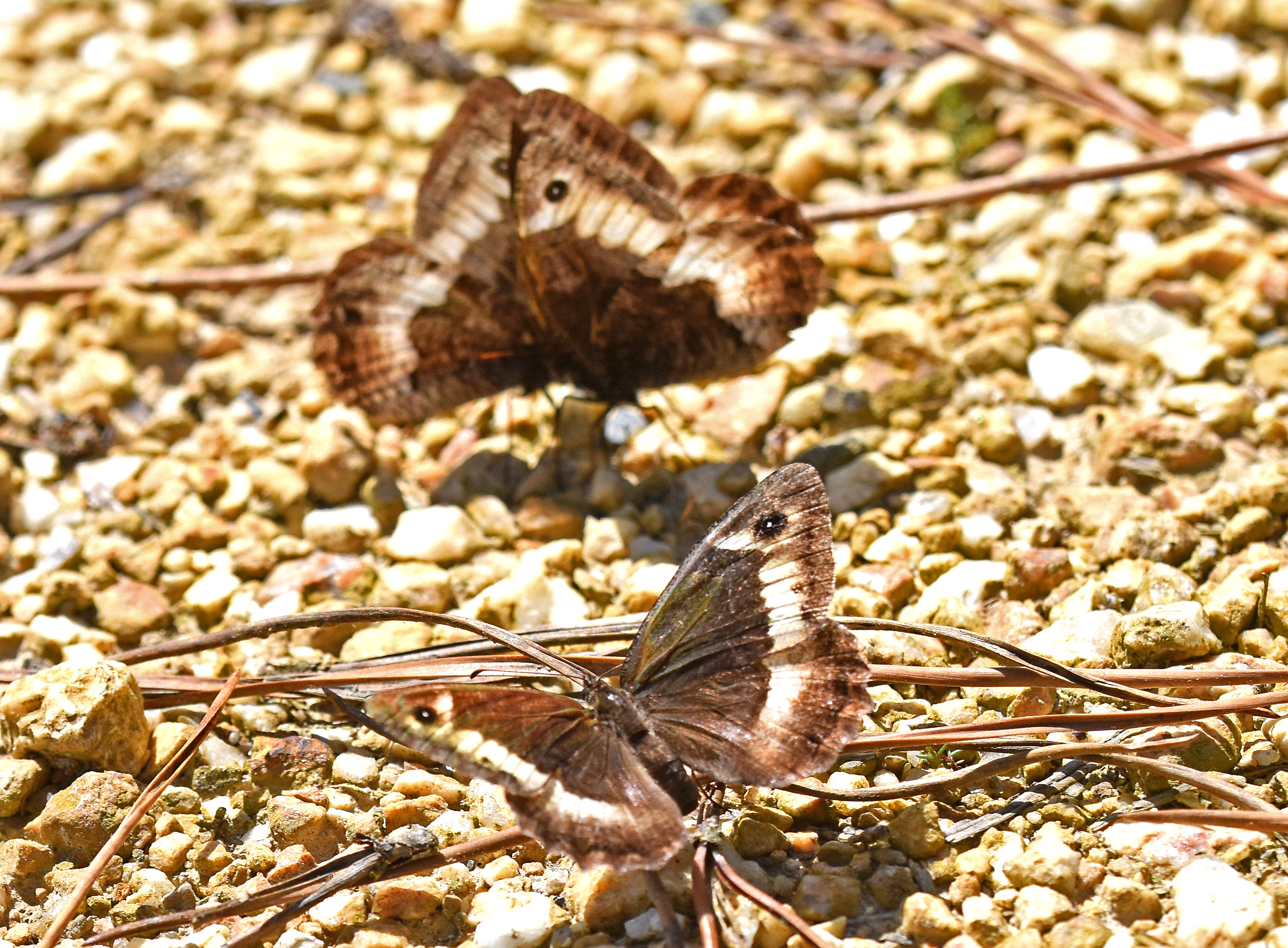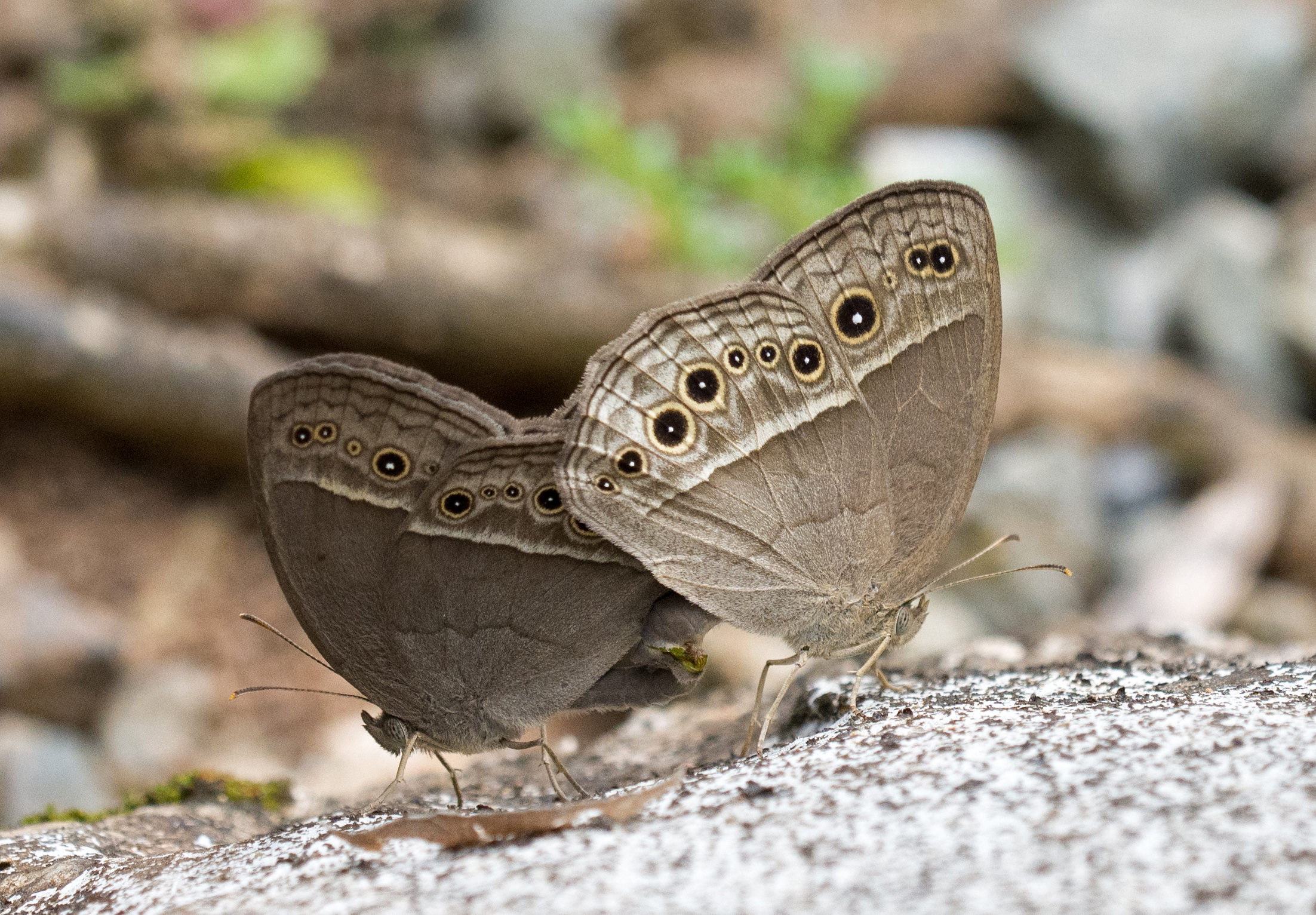 Burmese Bushbrowns (Mycalesis perseoides perseoides) mating pair. Thailand