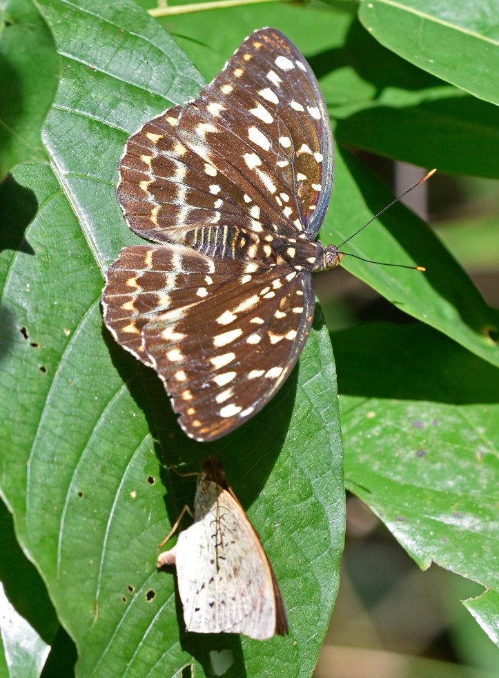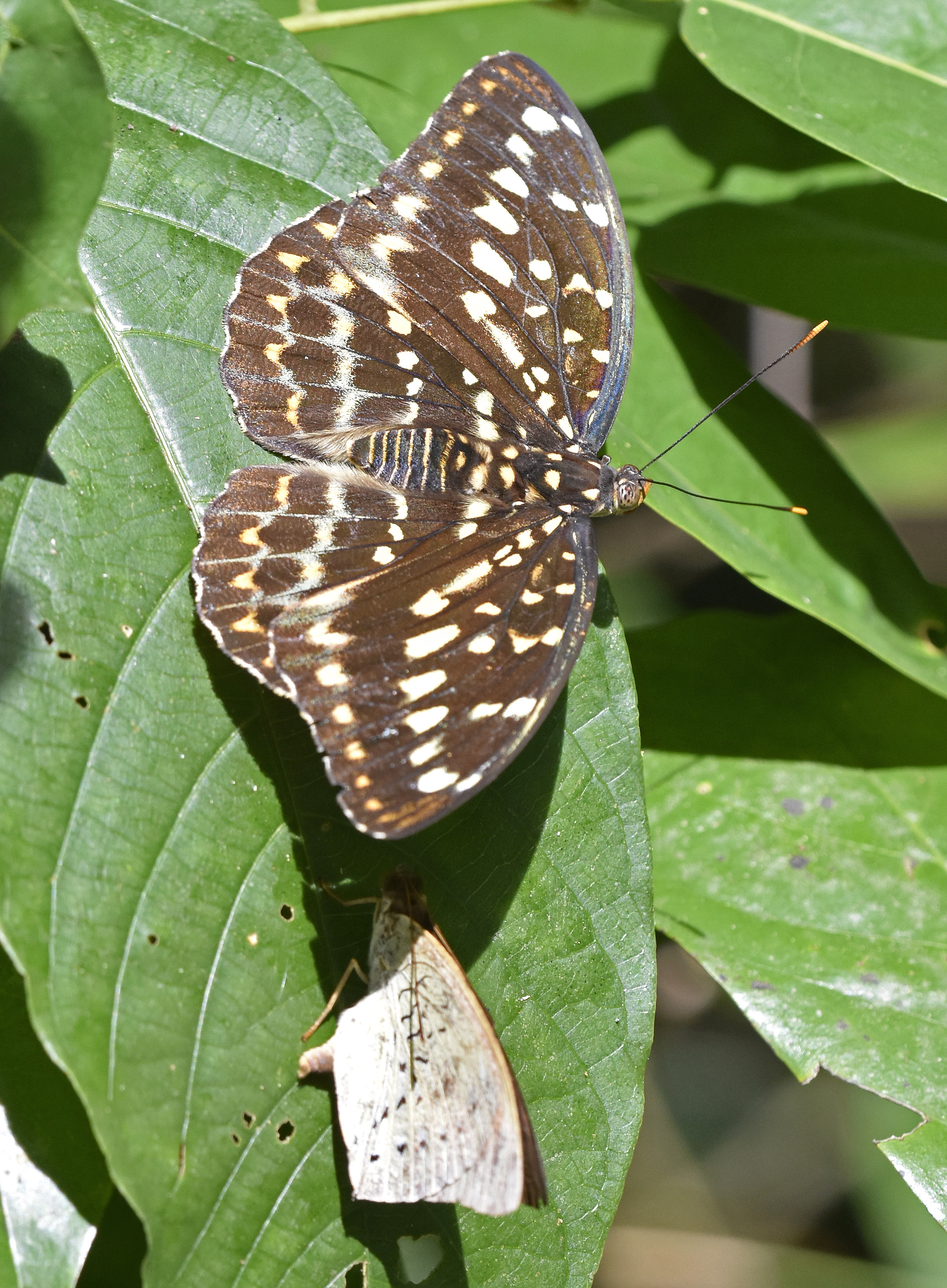 Male Plain Earl (smaller white butterfly) courting a much larger, female Common Archduke (Lexias pardalis) – choosing the wrong species! Thailand