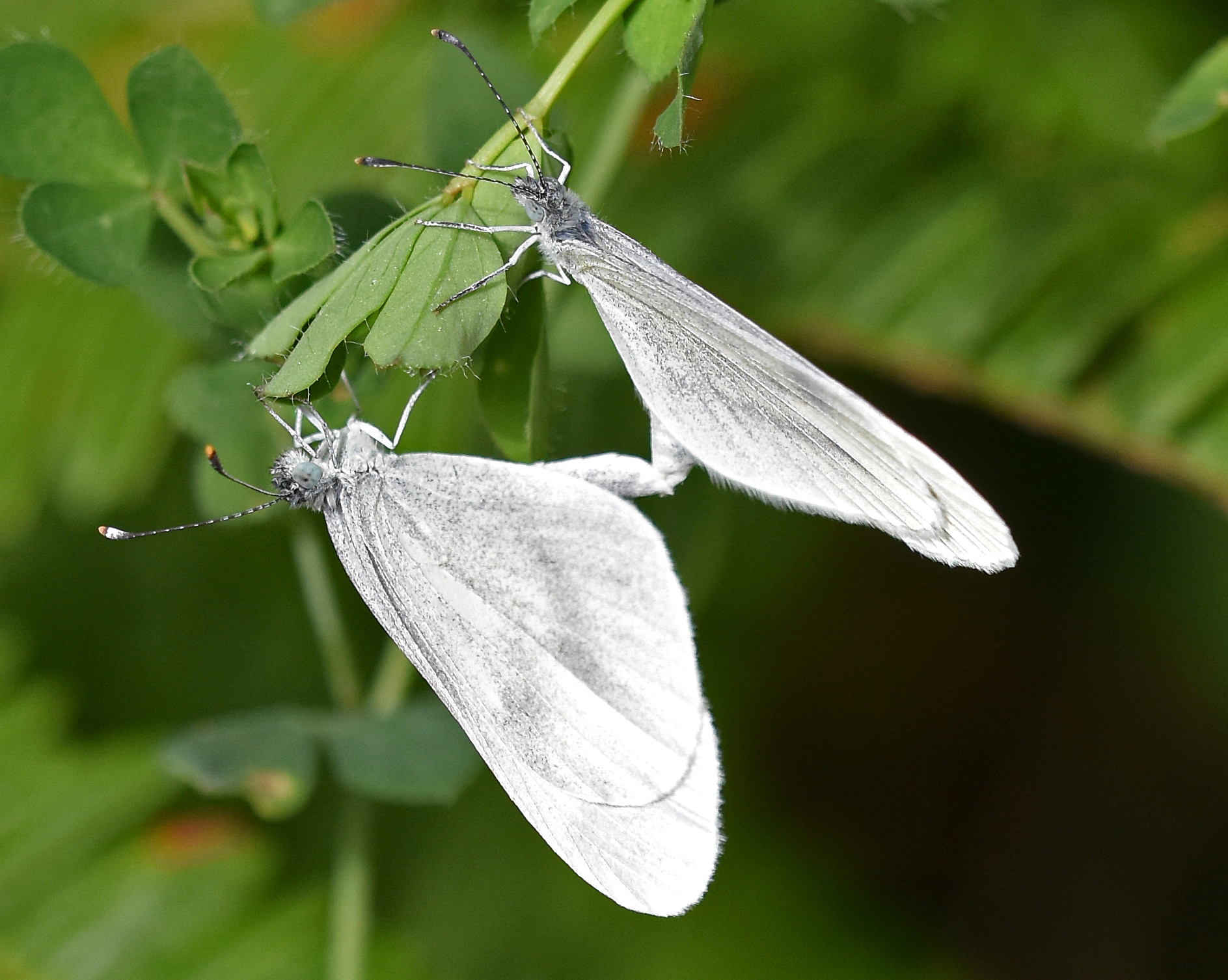 Wood whites (Leptidea sinapsis) in copula; male below. Spain