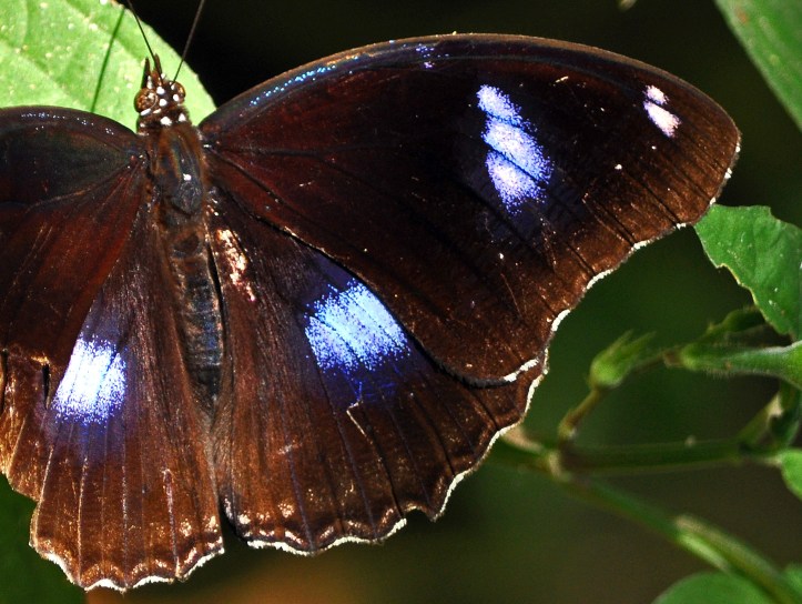 Great eggfly (Hypolimnas bolina jacintha) male with iridescent blue wing patches