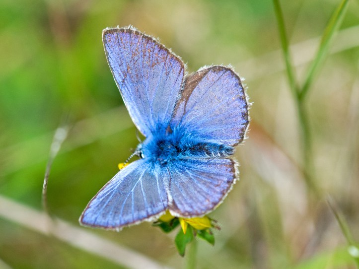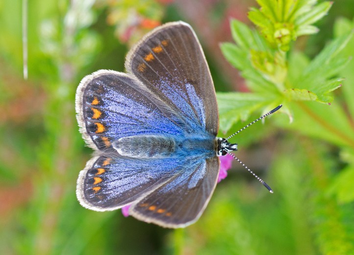 Female butterflies can also be darker – i.e. with a greater degree of wing melanisation – than their male counterparts, because they need to generate higher body temperatures in order to mature and deposit eggs, particularly at higher elevations. Here is a female Common blue butterfly (below); the females vary a lot in terms of their brownness, but are usually very different from the much more flashy males! Although, the females also have plenty of shiny blue wing scales as well.