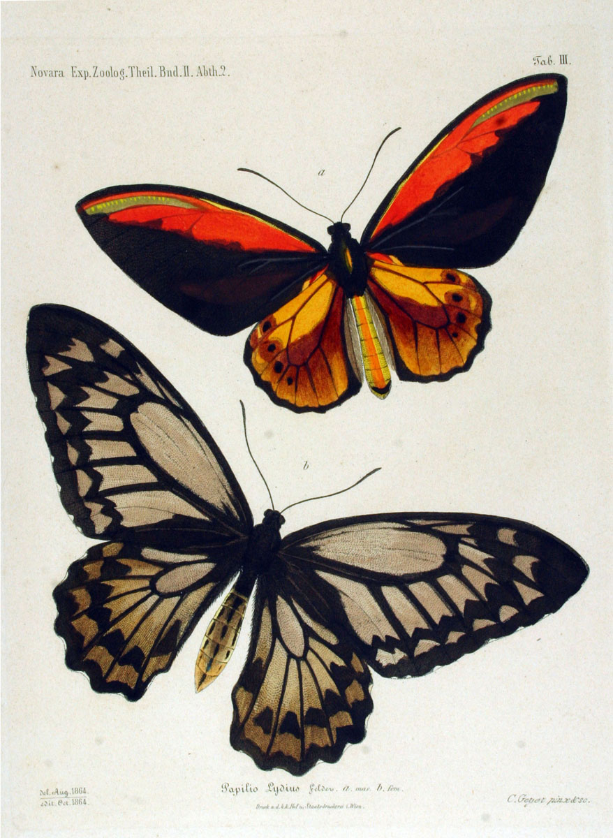 Birdwing butterflies are excellent examples of highly sexually dimorphic species, in terms of size.  In Queen Alexandra’s birdwing (Ornithoptera alexandrae) (below) – which is the largest butterfly in the world – the females are much larger than the males, and can weigh up to 12 g! Huge!
