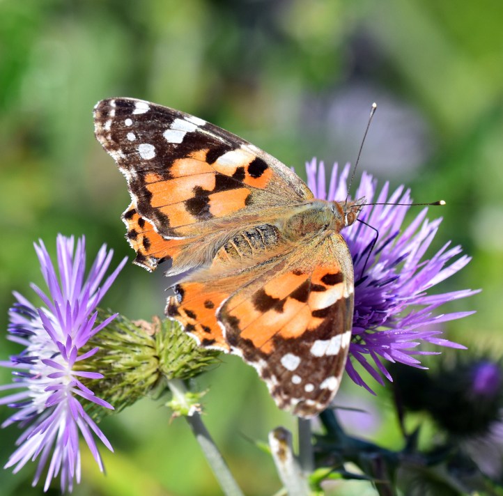 Excitingly, it seems that Painted ladies go even further than north Africa, even crossing the Sahara! Recent work suggests that migrants probably originating from Europe, cross the Mediterranean, the Sahara and the Sahel! A journey of over 4000 km, which would be the longest migratory flight ever recorded for a butterfly in a single generation (Talavera & Vila, 2016).  Some butterflies also migrate north again across the Sahara, but the movements in this region are described as ‘complex’. Nevertheless, it is an astonishing feat and well worth remember when hopefully, we see a nice influx of these migrants to our shores next summer.