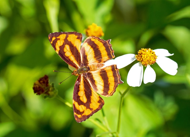 The lovely calico patterns seen in butterflies in the genus Hamadryas (below), called ‘crackers’, appear to be an example of lichen crypsis. These butterflies – spend much of the day perched with their wings spread and pressed against the bark of lichen‐covered tree trunks and branches. Males use these positions as courtship territories and they produce a loud clicking noise, or crack, during flight.