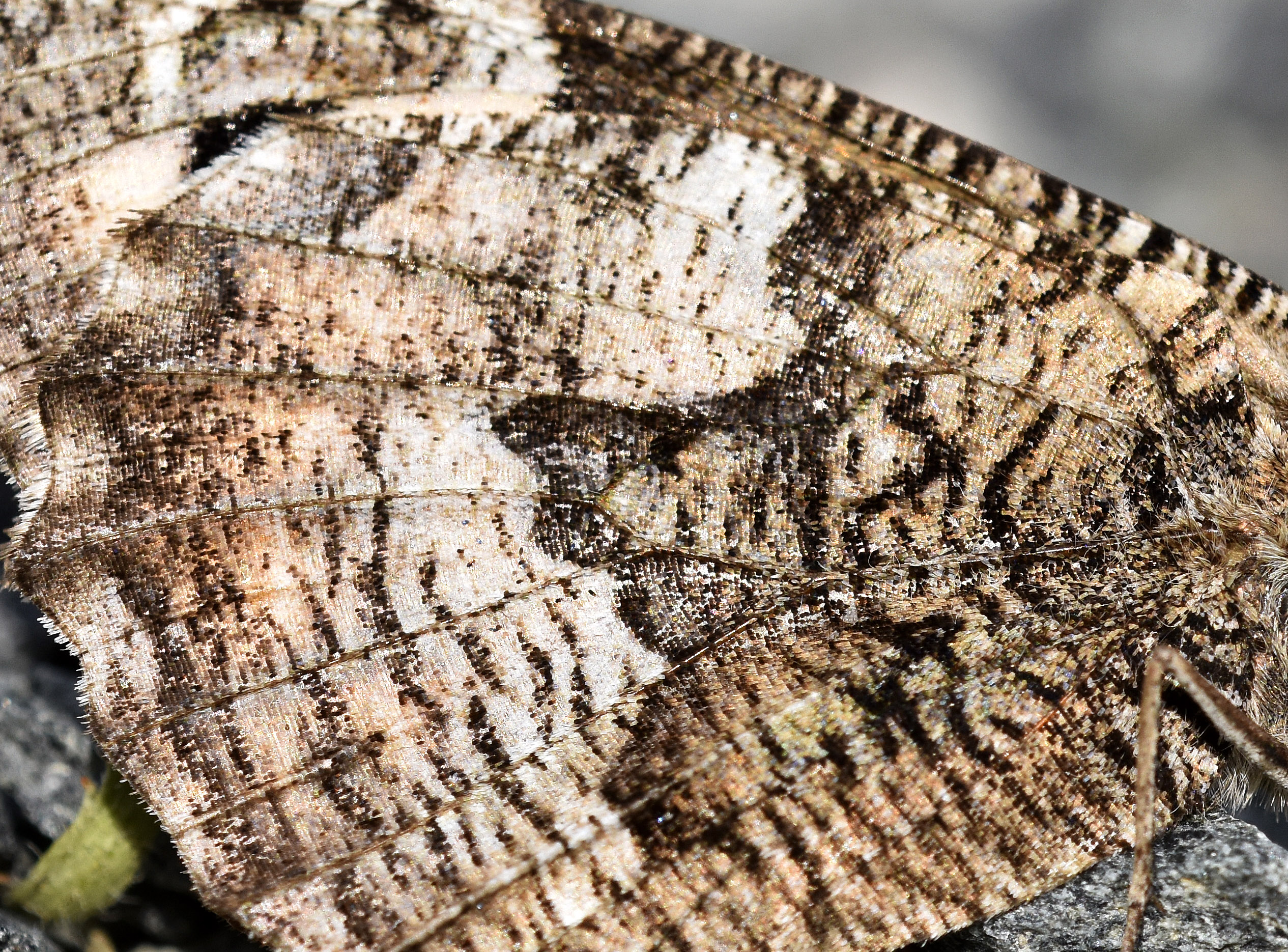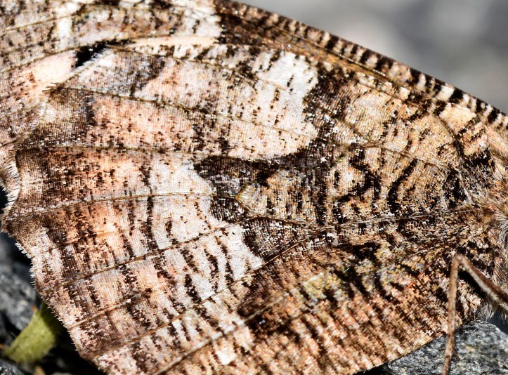 Grayling butterfly (Hipparchia semele) ventral wings looking like a piece of stone: displaying rock crypsis