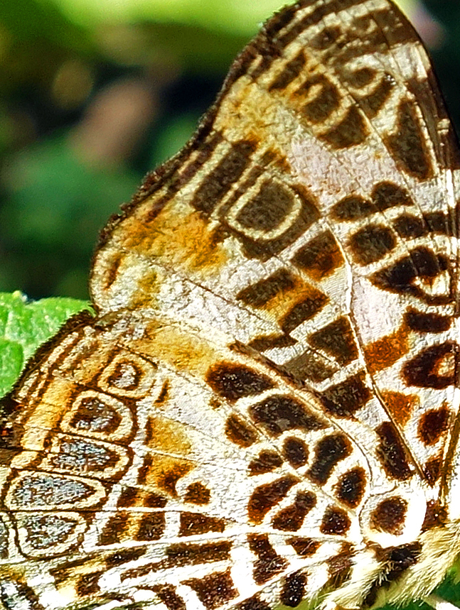 Himalayan jester (Symbrenthia hypselis) close up of ventral wing surface. Patterns like this may be controlled a few key genes.