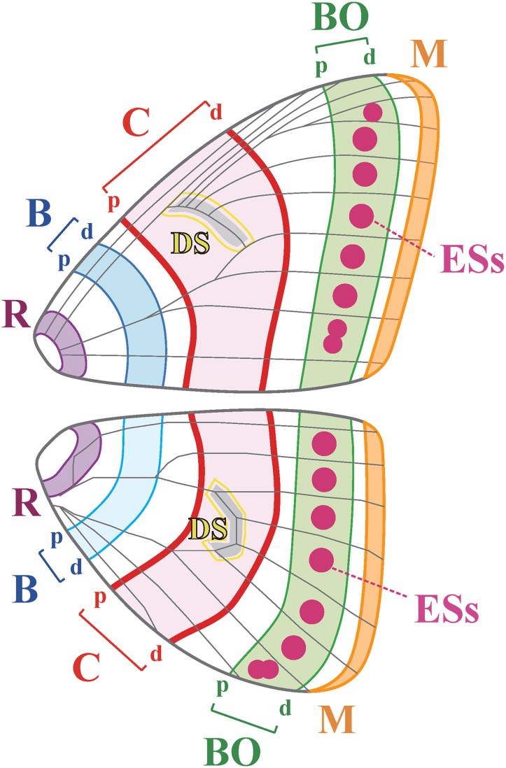 Nymphalid ground plan of butterfly wing patterns. (from Suzuki et al. , 2019)