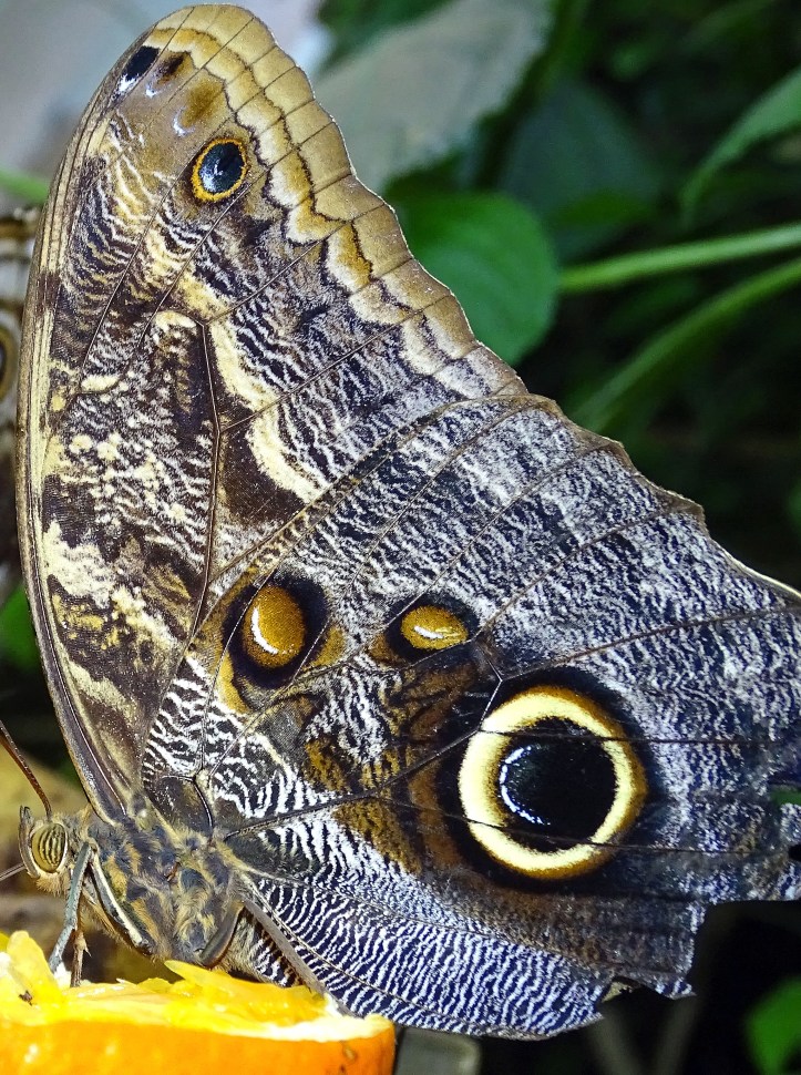 Owl butterfly (Caligo atreus) from Amsterdam zoo, showing it magnificent ventral eyespot