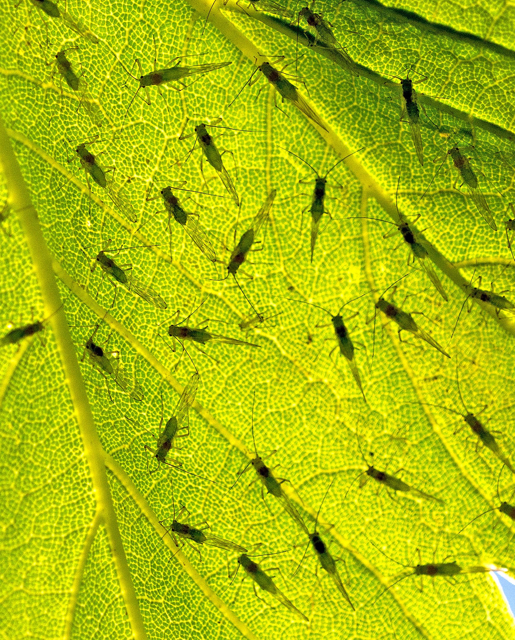 Sycamore aphids (Drepanosiphum platanoides) exhibiting spaced out gregariousness
