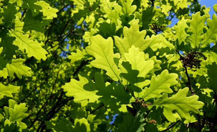 Fresh oak leaves are gorgeous. They start out perfect and untouched, but soon get eaten and colonised by every leaf chewer and sap sucker under the sun! Oak trees support more invertebrates (and lichens) than any other tree in the UK. All too soon, their leaves will be spotted and dotted and covered in holes; sprouting galls but somehow managing to produce enough sugars and energy for the tree to take in and do it all again next year. How is the balance maintained? We used to talk about the balance of nature, but it’s not fashionable these days!