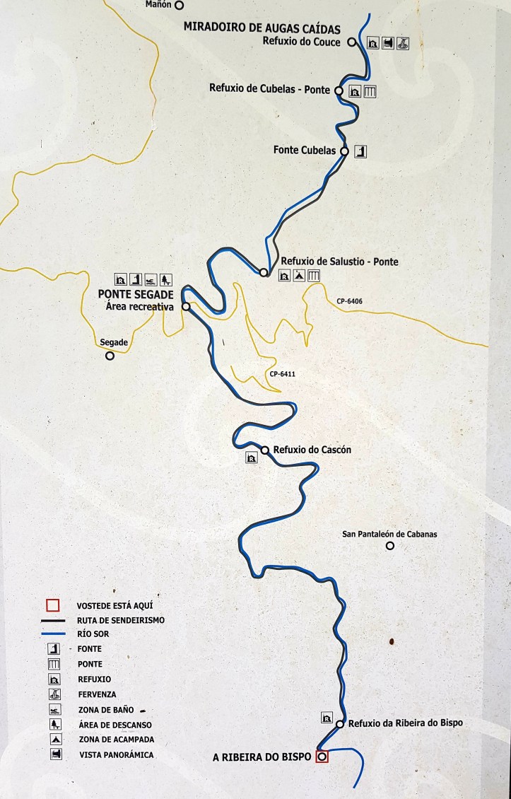 The Rio Sor is about 50 km long and it is possible to walk much of it (if not all of it, I’m not sure) along well maintained paths beside the river.