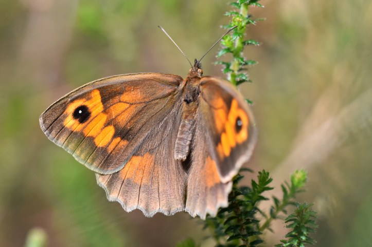 Males are generally more active than females and according to Brakefield (1982), search for mates by making “slow exploratory flights close to the vegetation” with frequent changes in direction. Professor Paul Brakefield FRS – who studied this species for his PhD – mentions that “courtship is short with few preliminaries” and “is similar to that of Hipparchia semele“, the common grayling, which was studied by Niko Tinbergen in the 1940’s, as described by my blog on the subject.