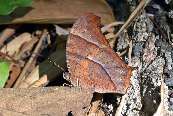 The sort of photography I do is not very sophisticated. I just home in on an insect, often a butterfly, and follow it with my camera; trying to get myself closer and also into a position where I will get the best picture. Most often, the insect will fly away before I have achieved a good shot. I have learnt to be very phlegmatic about such lost opportunities. There is also a lot of luck involved and you will get some and lose some. That’s the name of the game. Sometimes you can take dozens of pictures, but only one is any good; sometimes none are any good! A 150mm macro lens allows you to stand back a little from the organism, but there is no way that it does not notice you; especially butterflies, with their excellent eye sight. It is almost impossible to be an invisible witness of this hidden world. Your presence – a large, lumbering primate – will almost certainly influence the behaviour of the animal. Yes invertebrates are animals! Sometimes, insects which are deeply engaged with something, like sipping the nectar from a flower, will ignore you. Some, like butterflies with their tongues uncurled, are vulnerable and cannot move instantly. Others, depending on their health, temperament and vigour, will tolerate you for a while. Others become habituated to your presence. I like to think that butterflies that I chase, eventually give up trying to escape my attentions and just say: ” sod it, take your photograph then!” Some species are much more flighty and difficult to photograph than others. I like photographs which capture the insect in it’s habitat or environment. Like this beautifully camouflaged satyrid butterfly from Thailand (below).