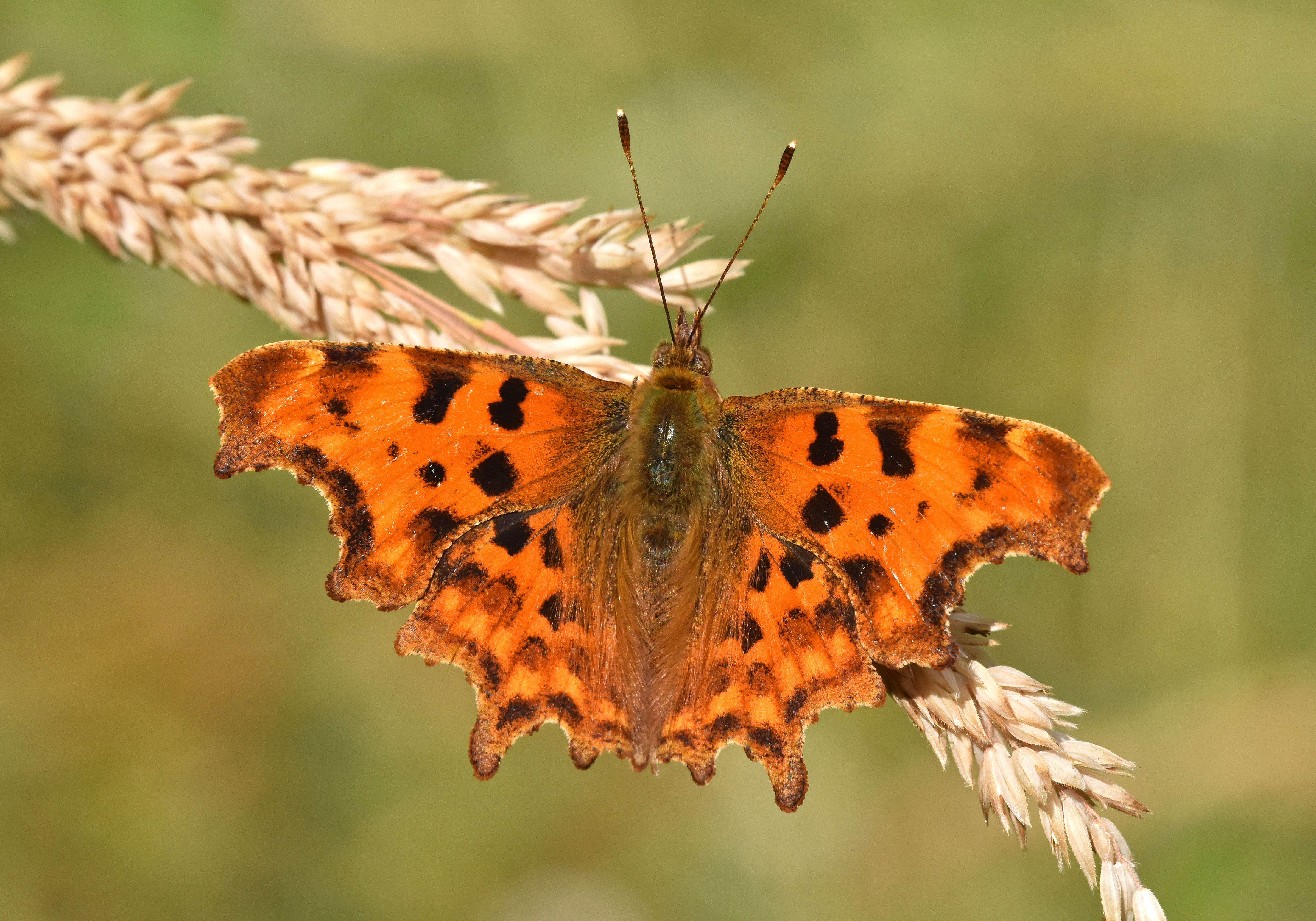 Comma (Polygonia c-album) f. hutchinsoni, perching male. 12 July 19. Beds, UK.