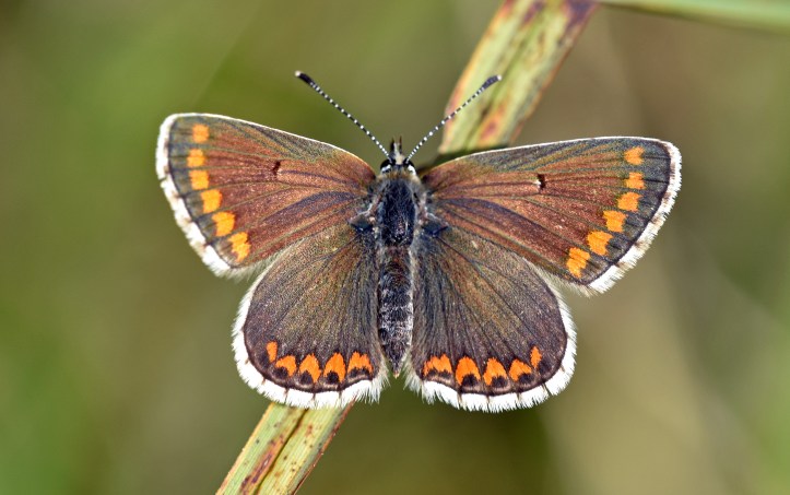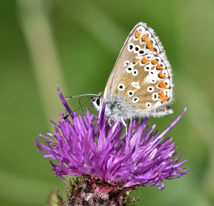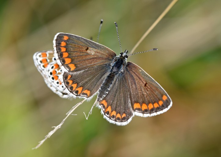 In 1993, the Brown Argus was described as a scarce or local species, which had declined by as much as 40% – in terms of sites – throughout its range in Britain (Bourn and Thomas, 1993). There were, however, large and erratic fluctuations in its numbers, suggesting that the factors governing its abundance were complex. Since the late 1980s however, not long ago really, the decline has turned around, and it now seems to be doing much better. The UK Butterfly Monitoring Scheme, reports that over the last 10 years, its status is Stable with a increase of 10%. Good news for a change!