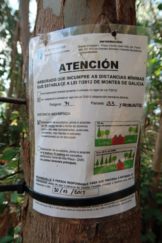 Notice explaining tree felling work. Ria Ortigueira, Galicia, Spain