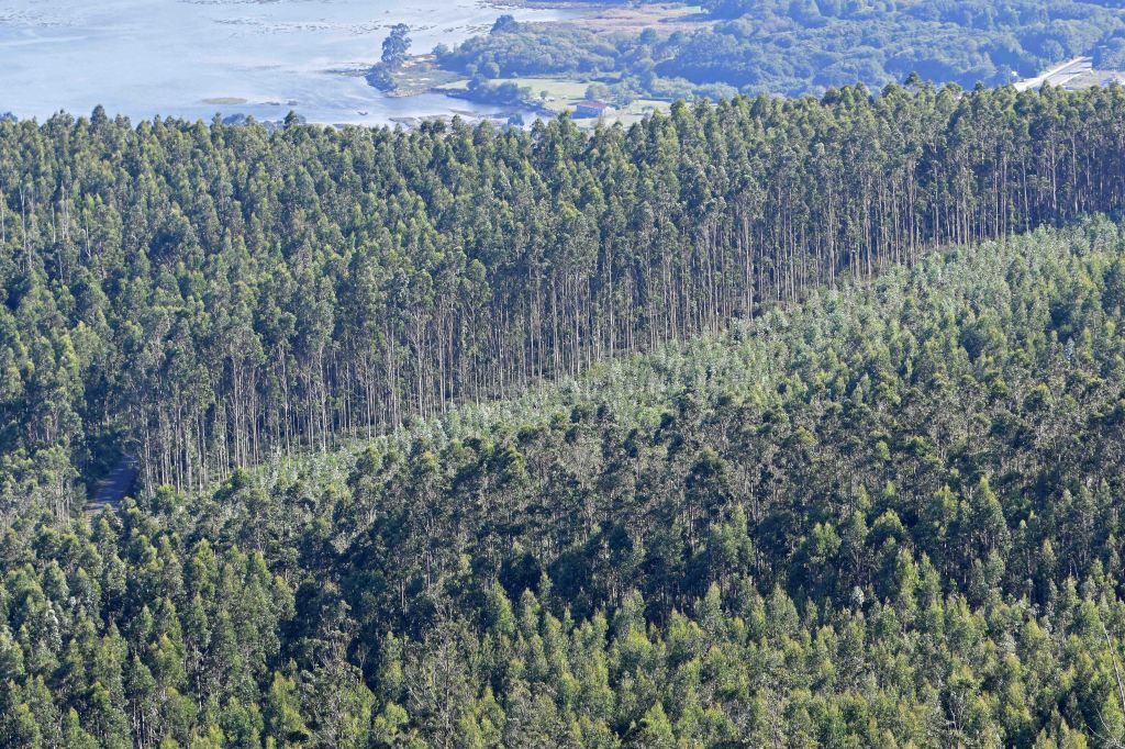 Eucalyptus stands beside the Ria Ortigueira, Galicia, Spain