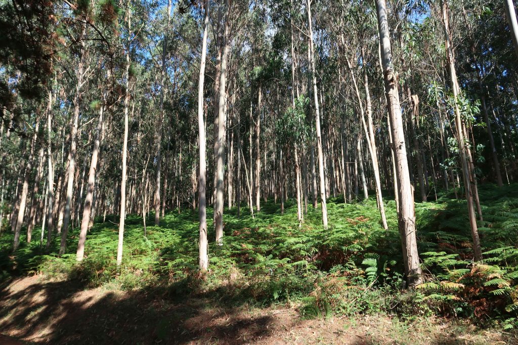 Eucalyptus trees were first introduced and planted in Spain in 1873. Initially, they were used for fuel and mine supports, but today, their value lies as wood pulp for paper; a billion euro industry. Contrary to popular opinion, reforestation with exotic eucalyptus mostly occurred on ‘spoiled soils’ without forests, and they mostly did not replace native woodland (according to Ruiz, 2010). Today however, exotic eucalyptus species occupy an area of about half a million hectares in Spain, of which the majority (c. 61%) is in the province of Galicia, in the NW of the country. The eucalyptus trees are usually felled (as a cash crop) every 15 years (12-20) or so.