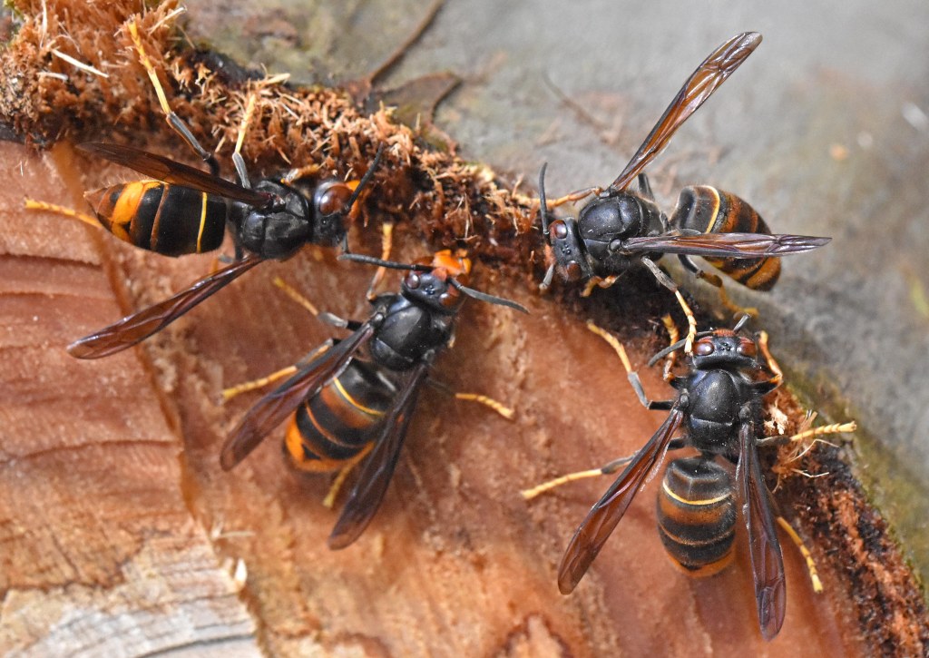 Asian hornets feeding on tree sap