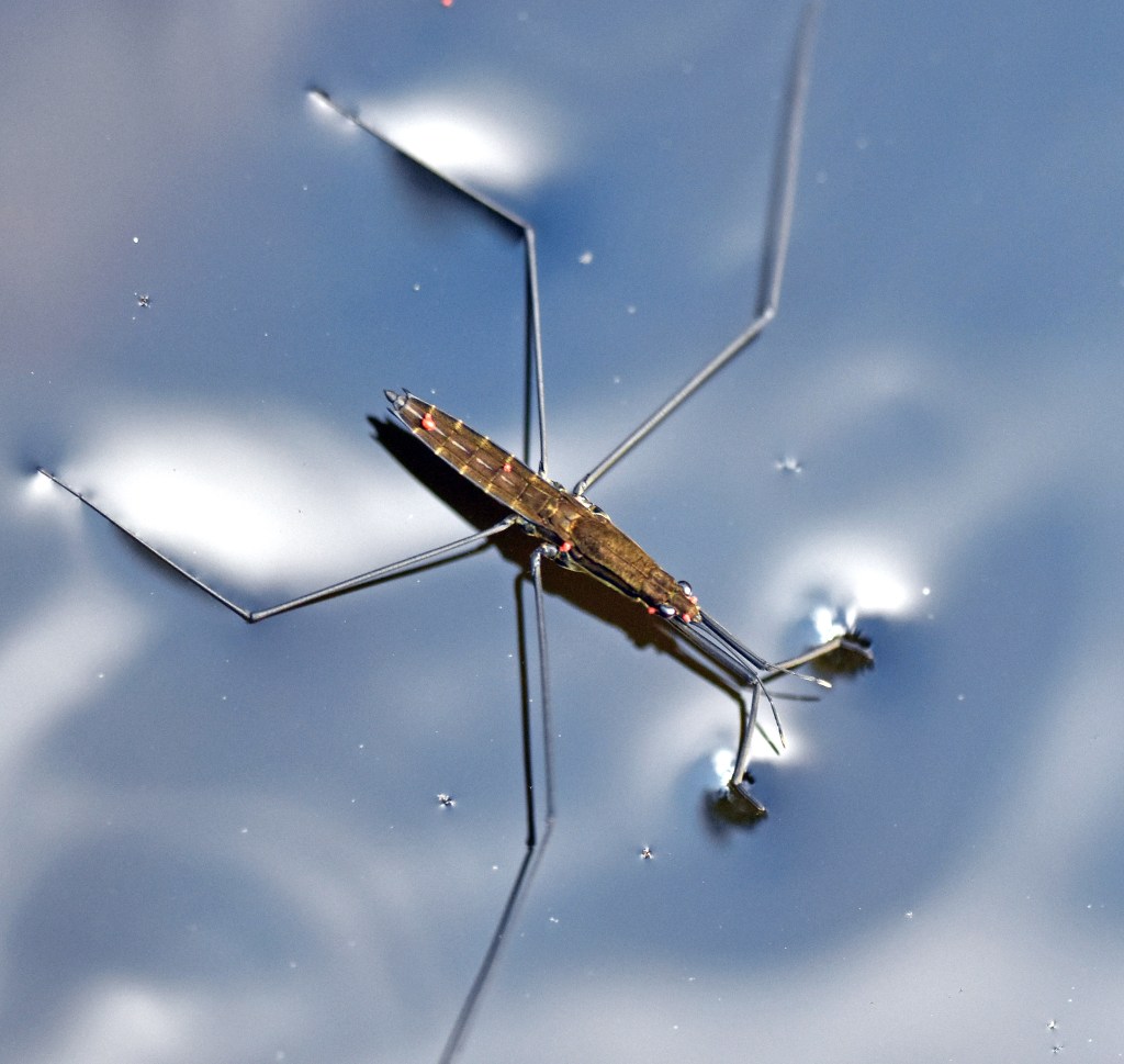 […] skater, Gerris lacustris, but I am not 100% sure. I have also blogged about this species in Spain: Gerrids bearing water mites. I was struck by how the meniscus – a trough shaped depression caused by the gentle pressure […]
