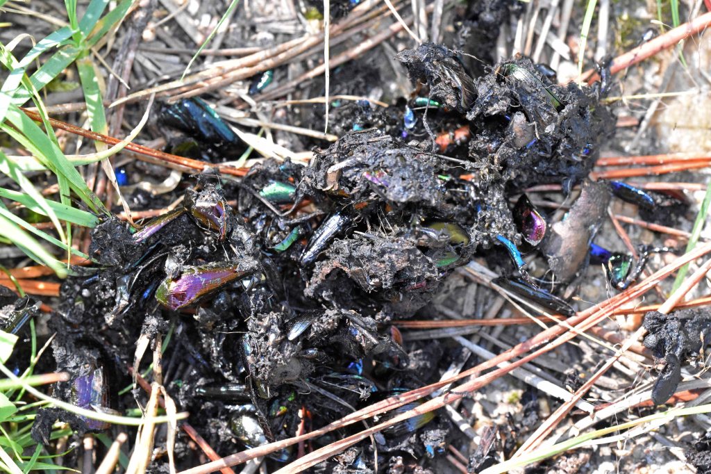 It would have been interesting to have collected the specimen and dissected out the remains, but I am more involved with photography than research, these days! However, I am left wondering what sort of animal ate all these beetles? I suppose a hedgehog must be top of the list? But badgers, owls, other raptors and maybe even bats, could be possible candidates?