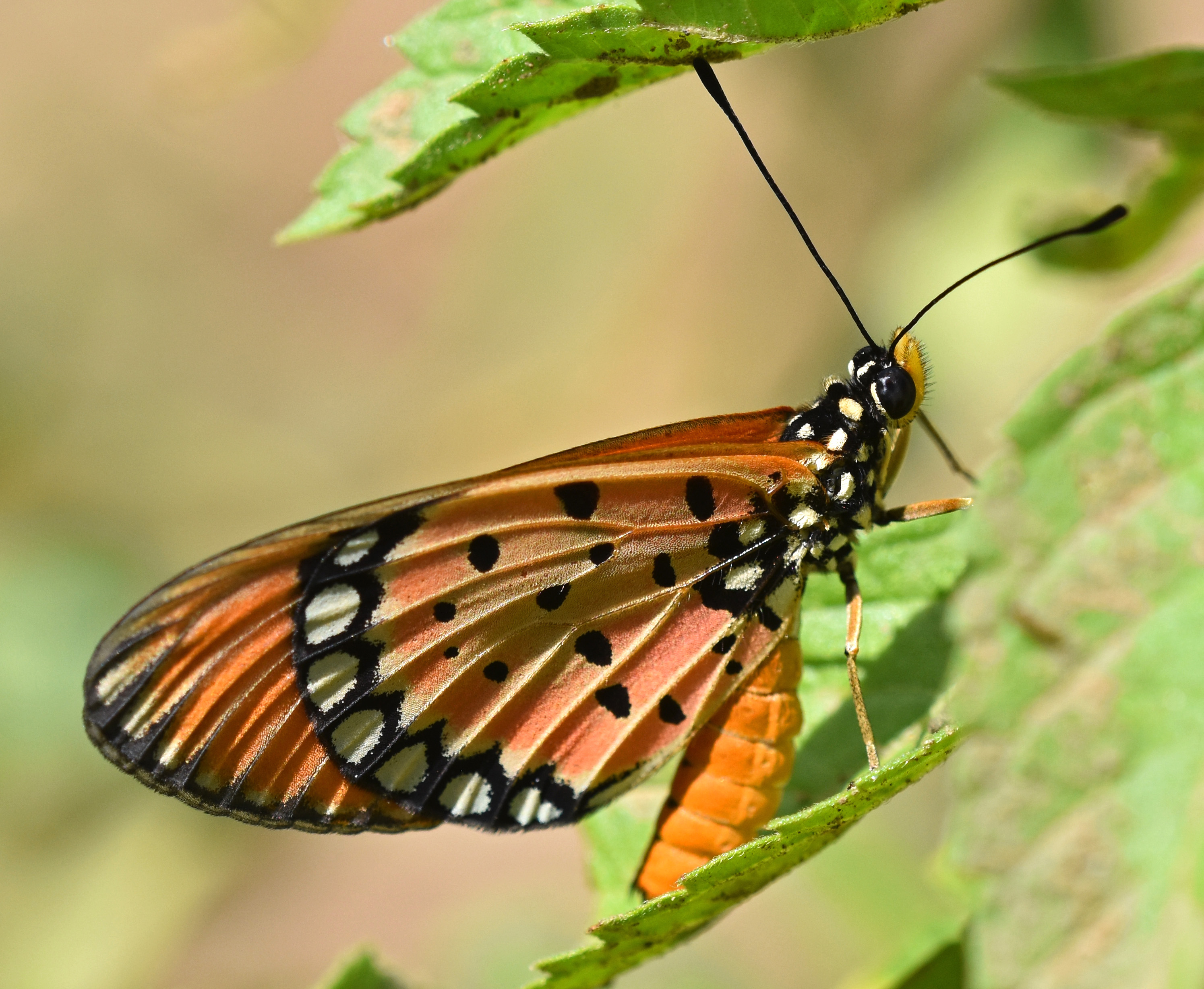 I was very pleased to come across a large group of Tawny Coster (Acraea terpsicore) butterflies when I was in Thailand last October. They were very active, and although I did not see any mating taking place, it had clearly happened because the females were bearing a sort of mating plug called a sphragis!