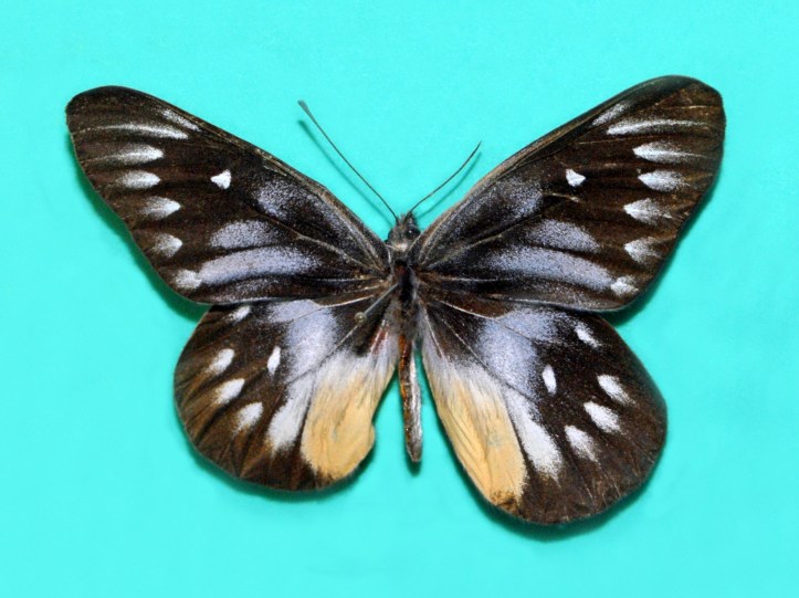 The Redbase Jezebel (Delias pasithoe) upperside. Hectonichus [CC BY-SA 3.0 (https://creativecommons.org/licenses/by-sa/3.0)%5DWhether these darker female forms of the Chocolate albatross really are part of a mimicry ring – i.e. gaining protection from predation by looking like very similar, poisonous species – remains to be definitely proven, but it is an interesting idea. The theory is that female butterflies are the ones that most need this mimicry protection. They may carry carry heavy loads of eggs, which could impair their ability to escape when attacked by birds and other predators; so natural selection will favour the ones which look like species the predators have already learned to avoid! Males on the other hand, are I suppose, more expendable! Their bright colours are probably more to do with attracting the ladies, than frightening off predators!