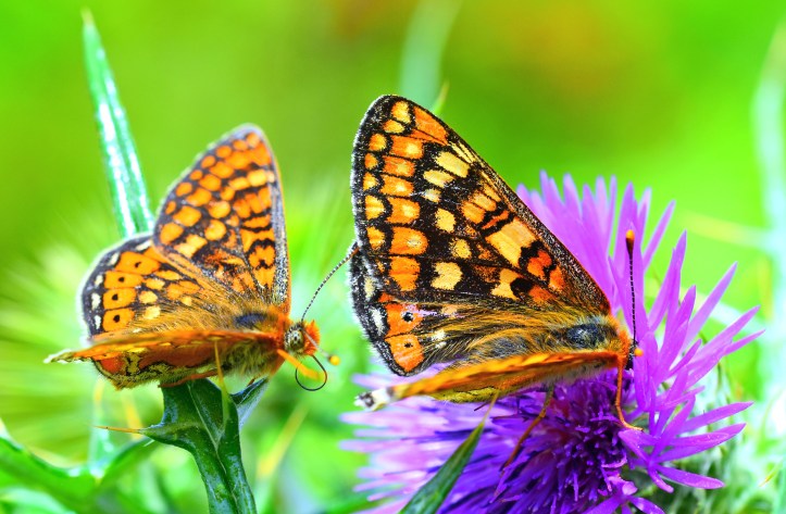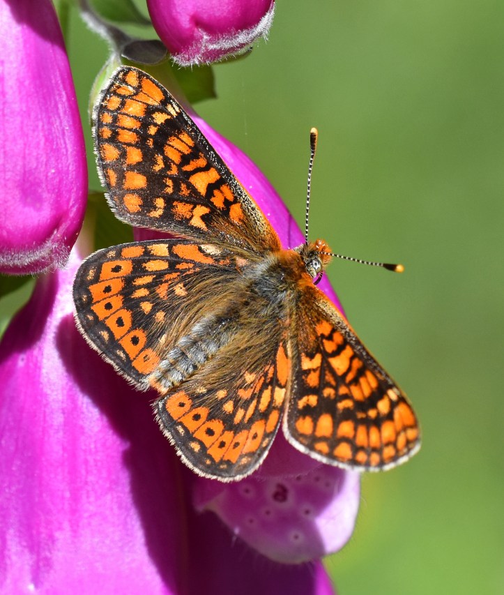 Marsh fritillaries, Euphydryas aurinia (Lepidoptera: Nymphalidae), are one of my favourite butterflies. The beautiful tapestry of yellow, orange and black colours on their wings creates a stunningly attractive pattern, especially when contrasted against the bright pink colour of a flower.