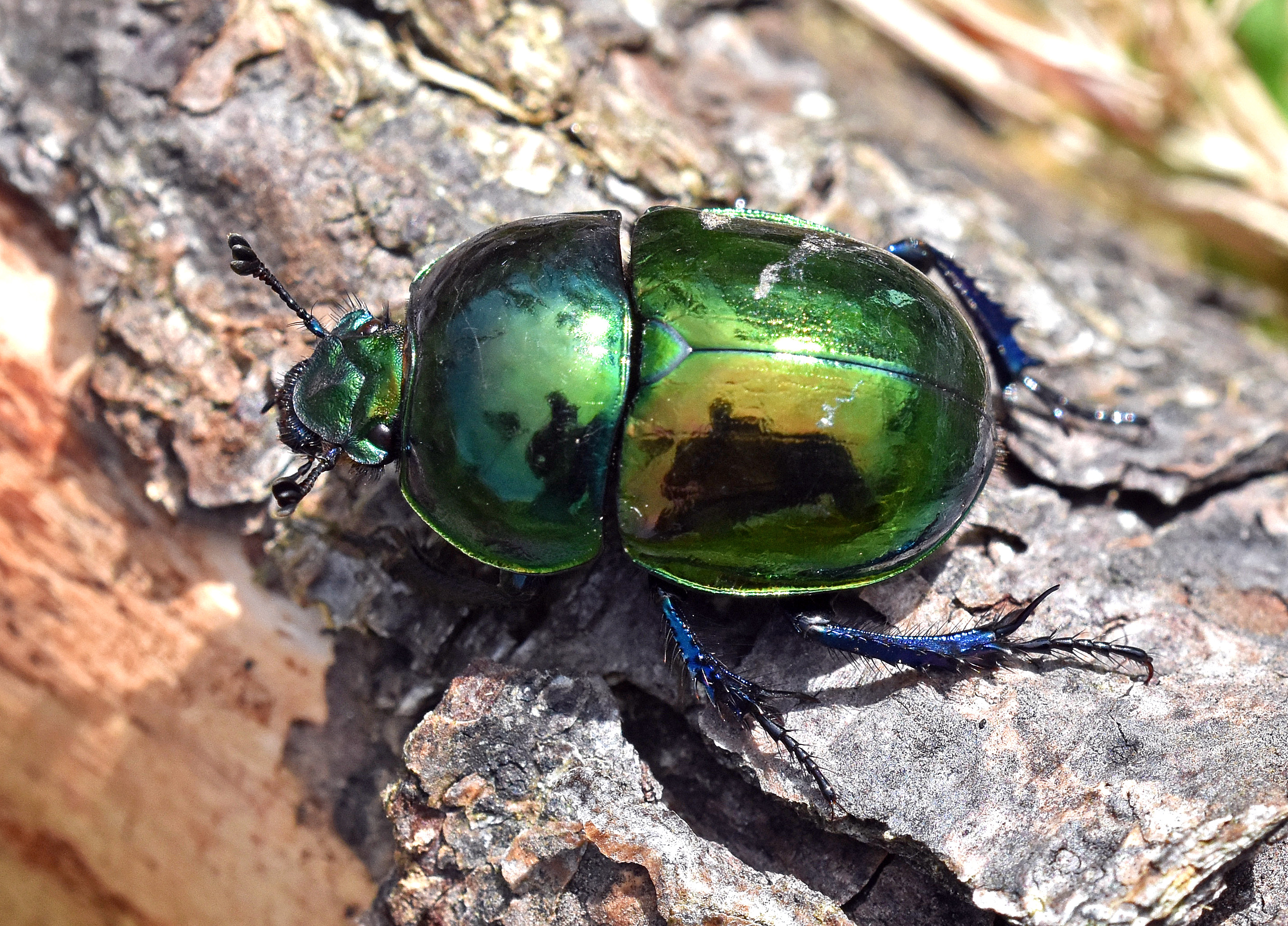 Dung beetle (Trypocopris [=Geotrupes] pyrenaeus var. coruscans) Spain. Photograph by Raymond JC Cannon