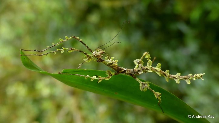 Moss mimic Stick Insect, possibly Trychopeplus thaumasius. By Andeas Kay (Flickr CC)
