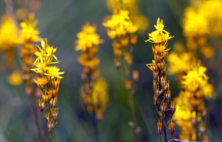Bog asphodel (Narthecium ossifragum) flowering in late June, Galicia, Spain