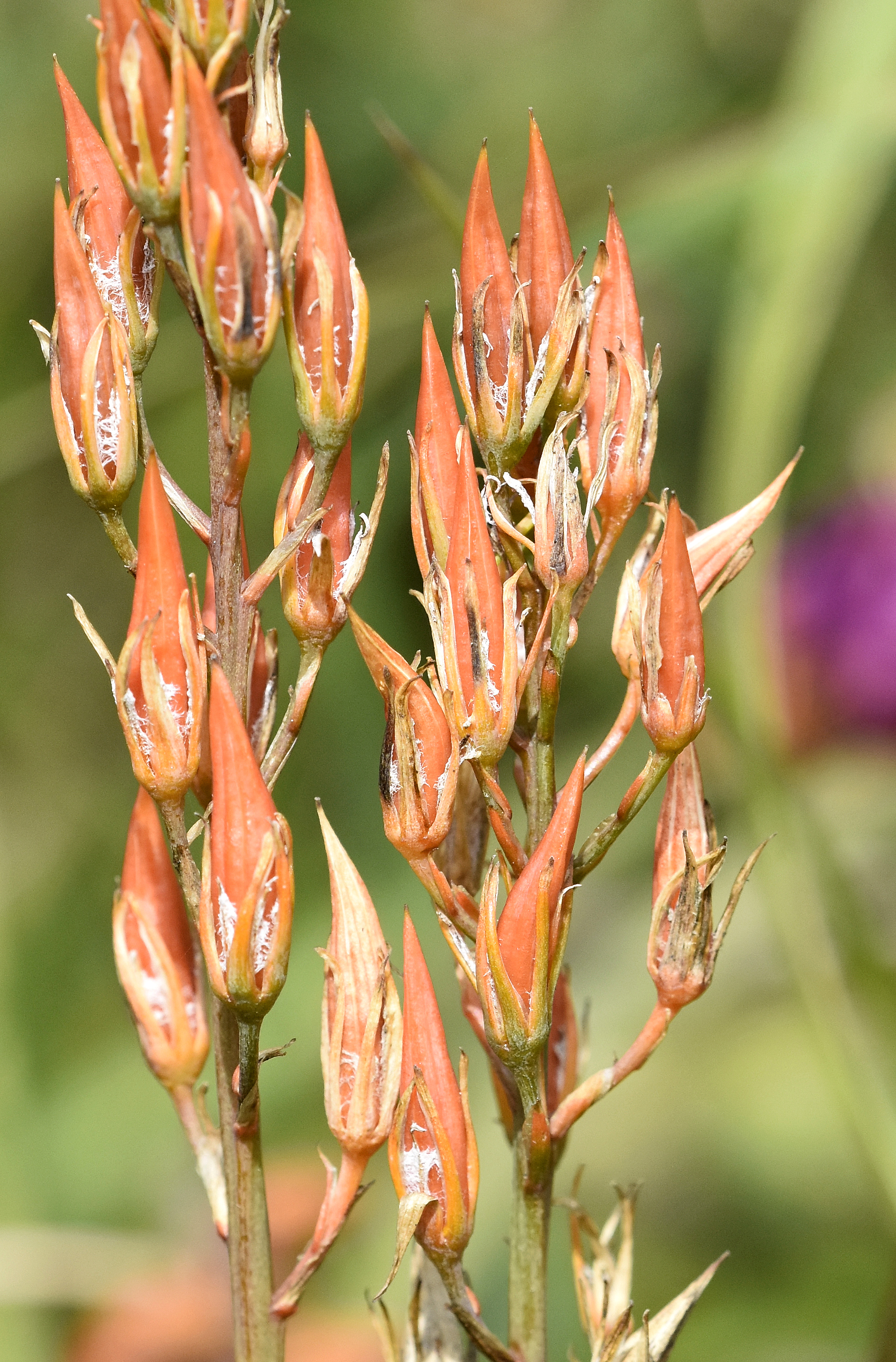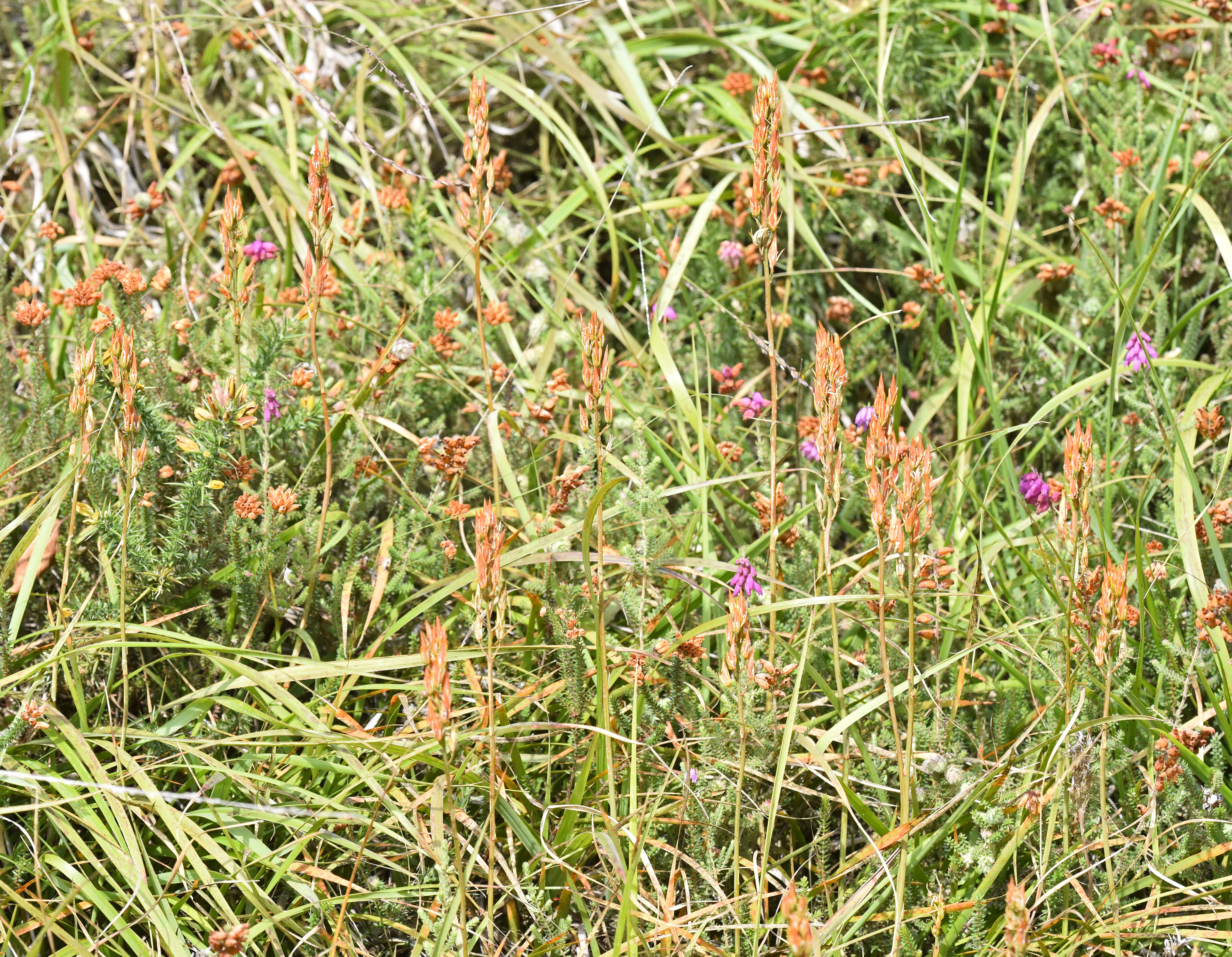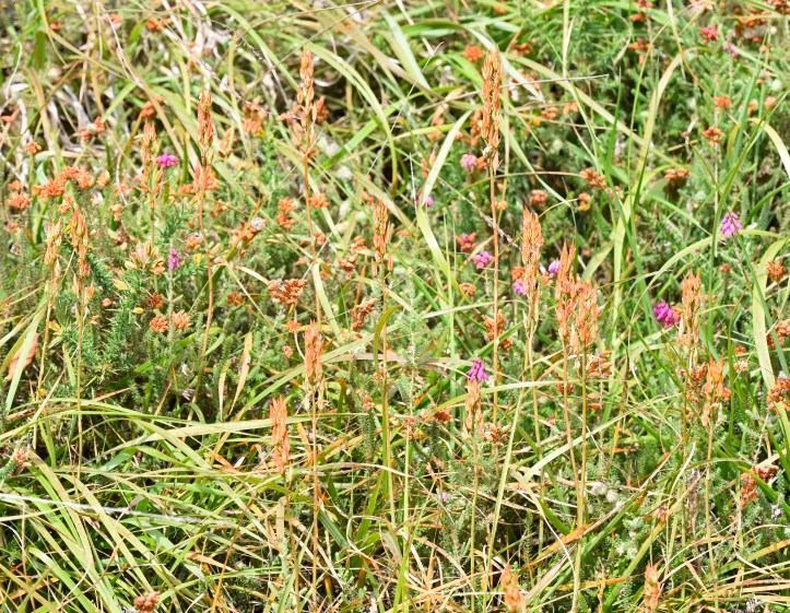 Bog Asphodel, Narthecium ossifragum,is a perennial herb (5 -40 cm tall) which typically grows on short wet grasslands on acid soils. It occurs in the British isles, Scandinavia, the Netherlands, Belgium, Germany, France, Northern Spain and East Portugal. I first got to know it in the form shown below, when it is in fruit, at the end of summer or early autumn.