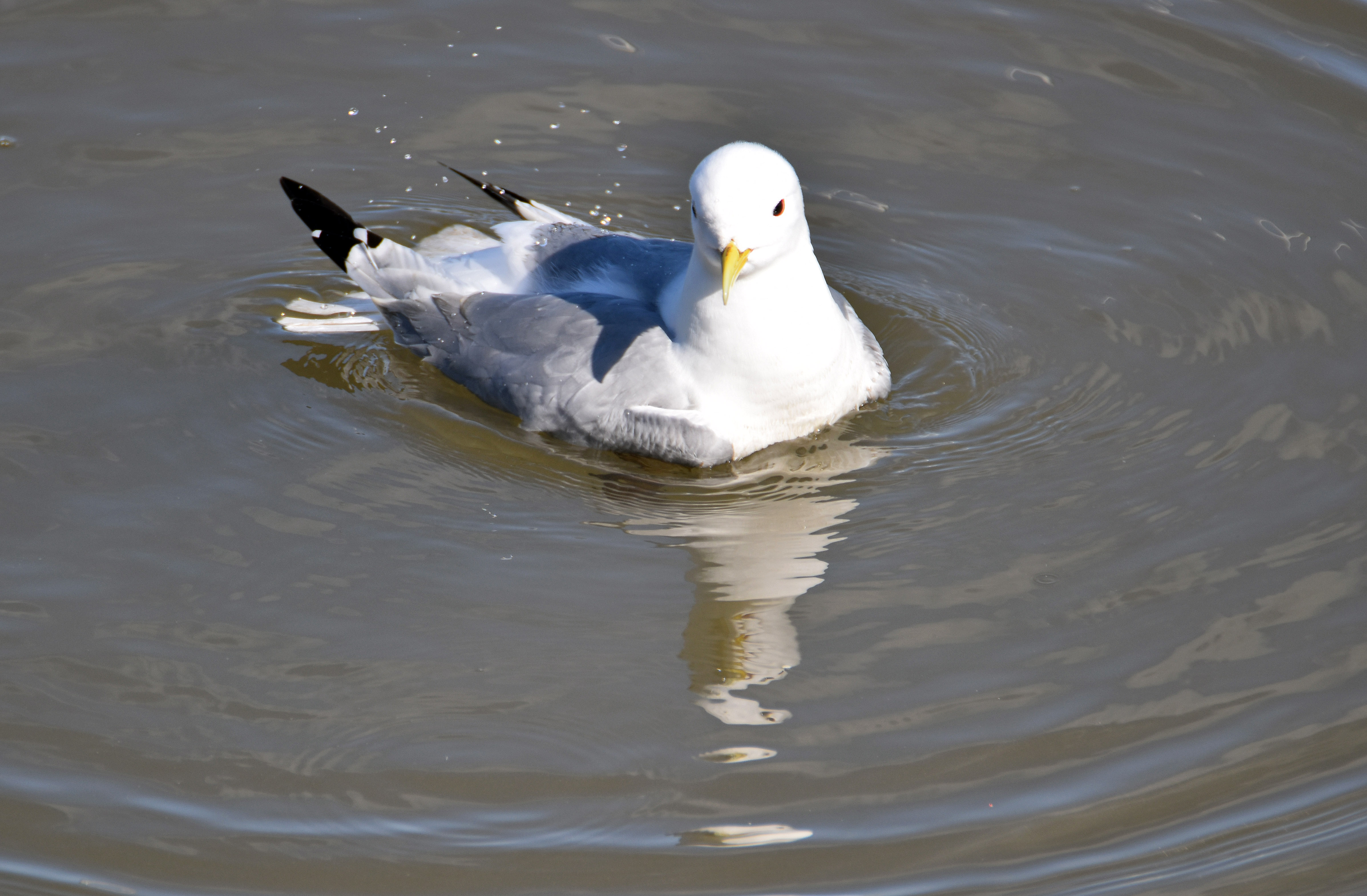 Black-legged kittiwake (Rissa tridactyla) washing off some mud in the harbour on 12 May. Scarborough